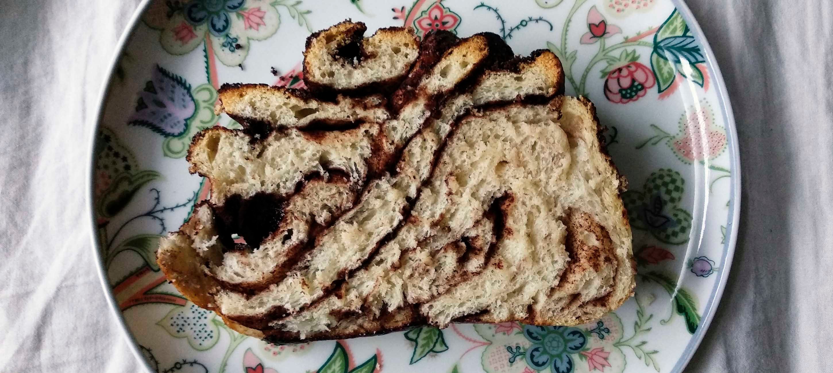 - 5A tésztagömböcöket egyenként kinyújtjuk, megkenjük olvasztott vajjal és megszórjuk a kristálycukorral elkevert kakaóporral. A tésztáta hosszabbik oldalról egyenként feltekerjük, és a szélét enyhén bevizezem, hogy könnyebben összetapadjon a tészta.