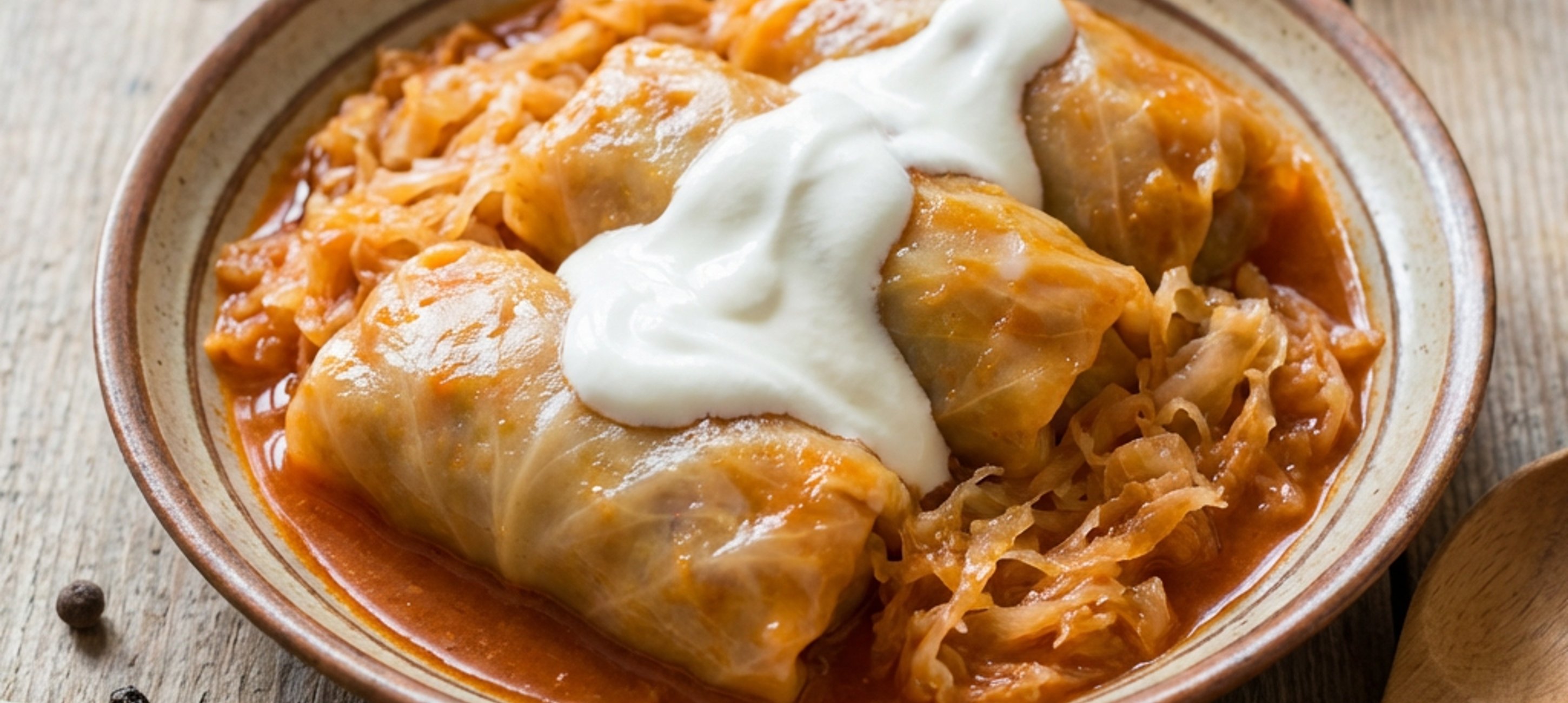 - 6A hagymára tegyél egy réteg apró káposztát, szórj rá egy kevés köménymagot, egész borsot, babérlevelet és egy-két csöves pirospaprikát. Ezekre ültesd rá a betöltött káposztacsomagokat.