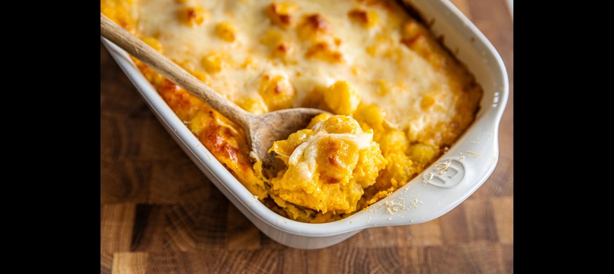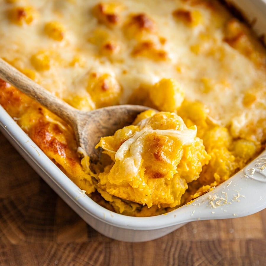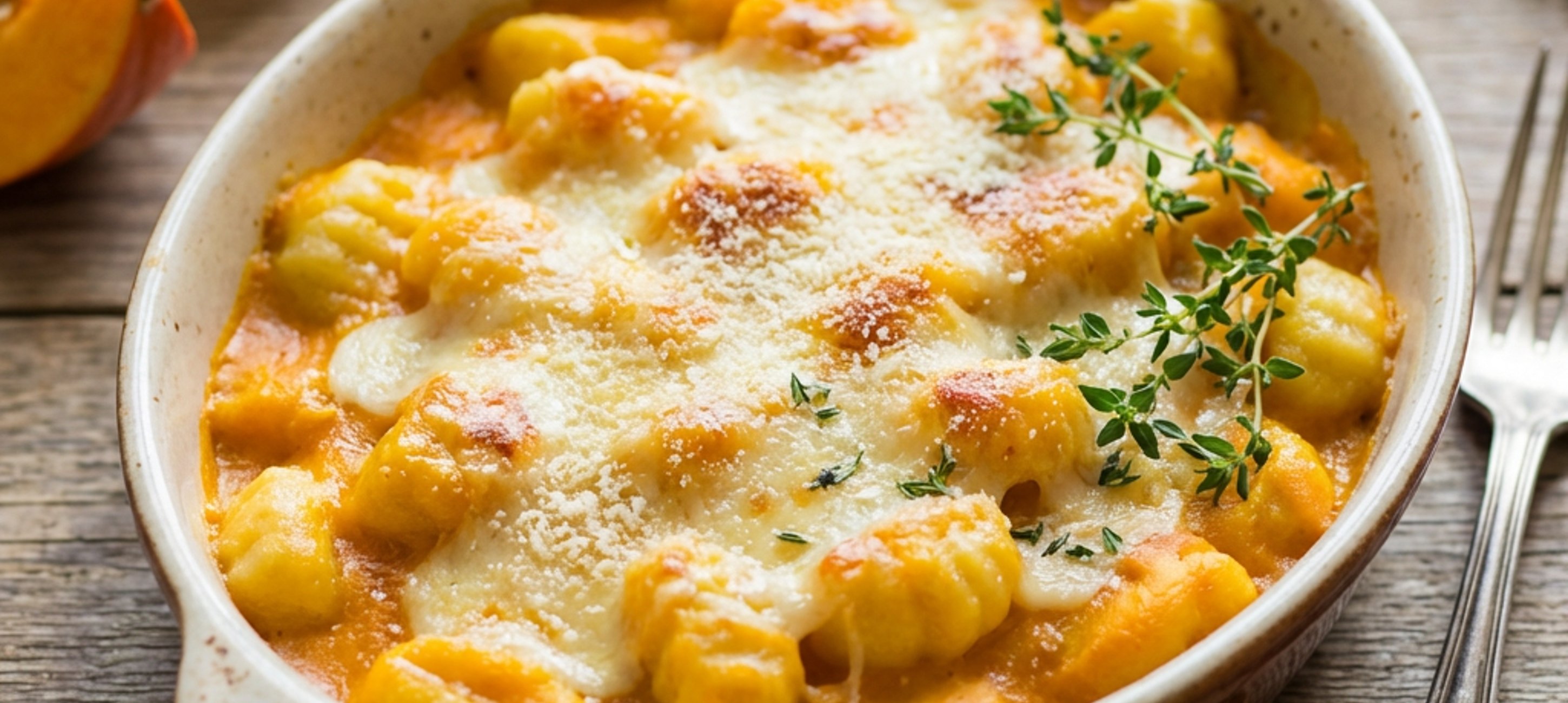 - 4Öntsd az nyers gnocchit egy sütőedénybe, add hozzá a tökös szószt, keverd jól össze, majd simítsd el a felületét.