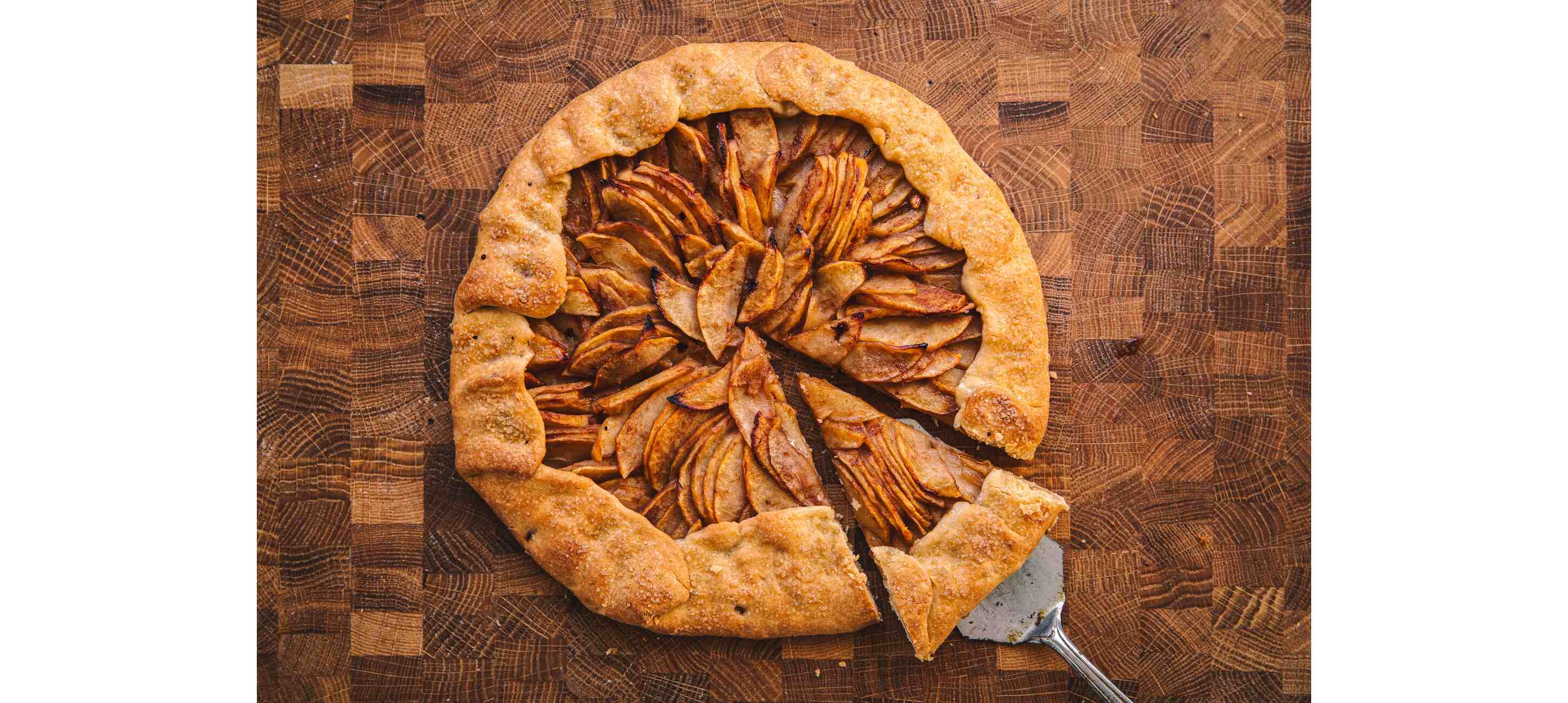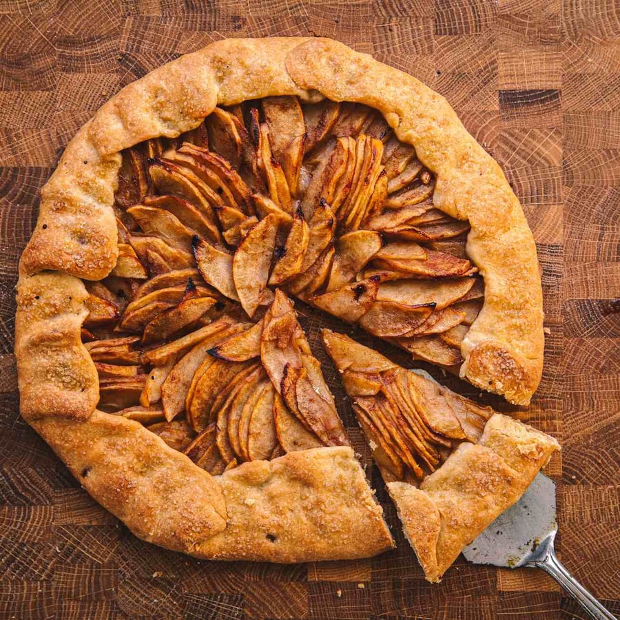 Rendezd el rajta az almaszeleteket úgy, hogy a szélein 3–4 cm tészta szabadon maradjon. Hajtsd rá a széleket, és enyhén nyomkodd le. Szórd meg a maradék barnacukorral, majd süsd kb. 35 percig, amíg az alma megpuhul, a tészta pedig aranybarnára sül. Ha a széle túl gyorsan pirulna, takard le fóliával. Hagyj neki pár perc pihenőt a tepsin, aztán tálald langyosan — egy gombóc vaníliafagyival az igazi!
