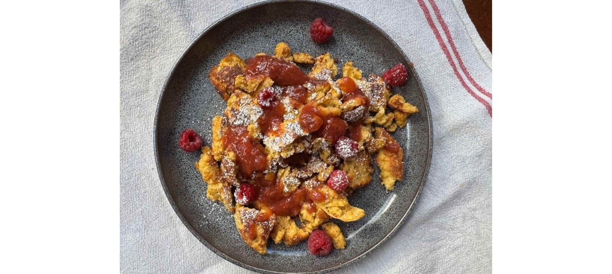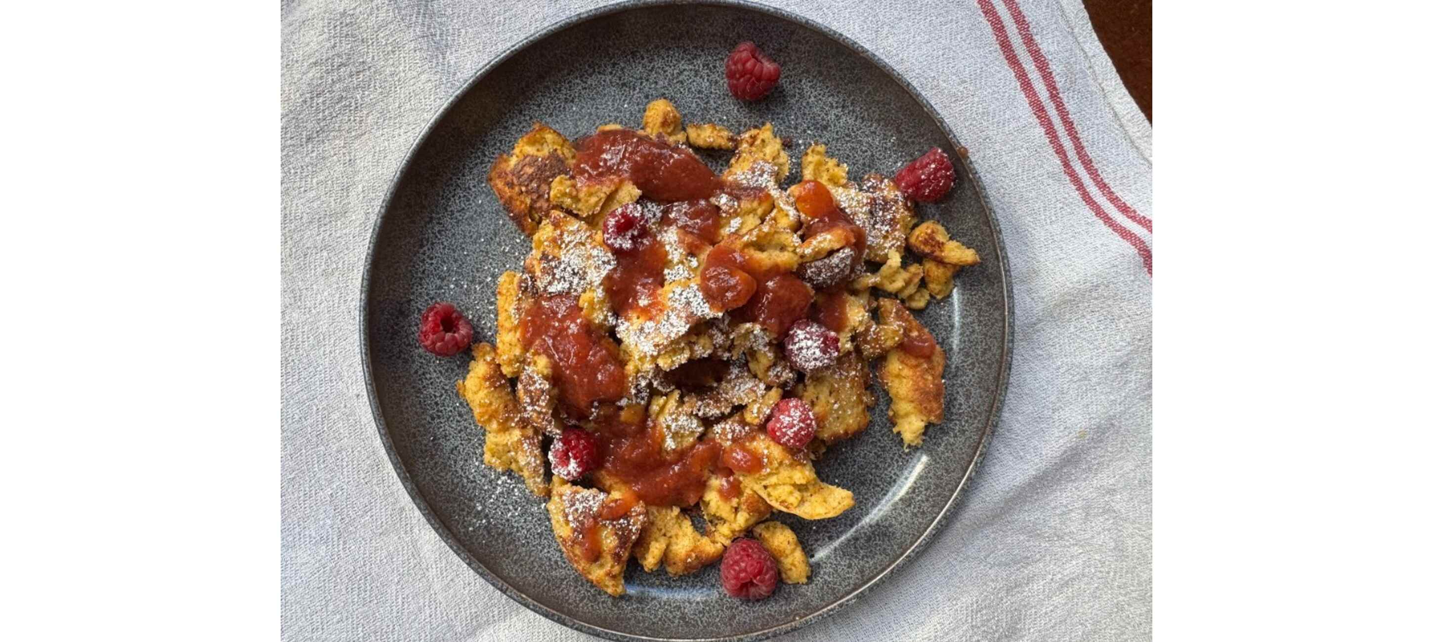 - 1A tojást szétválasztjuk. A sárgáját a skyr joghurttal, a tejjel, a liszttel, a sóval, a vaníliával és az édesítővel csomómentesre keverjük. A tojásfehérjét kemény habbá verjük, majd óvatosan a masszához forgatjuk, hogy könnyű, levegős tésztát kapjunk.