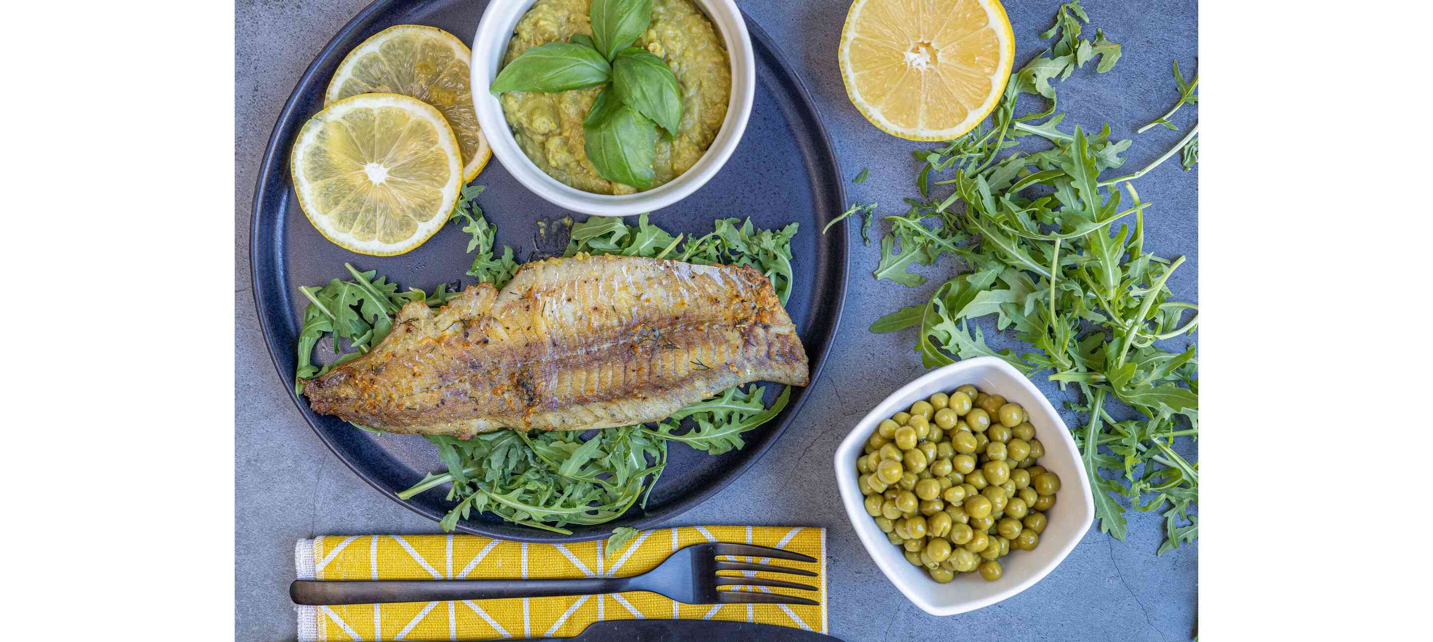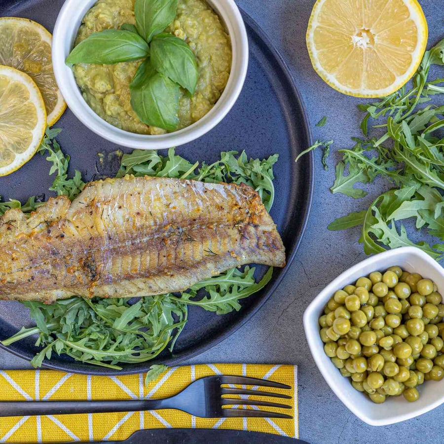 - 8Tálaljuk a sült halat a borsópürével, főtt rizzsel vagy kinoával, vagy egy friss, citromos rukkolasalátával.