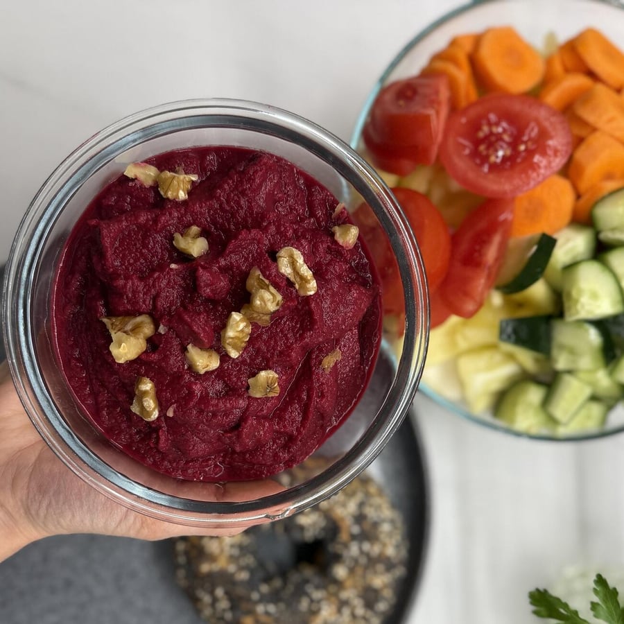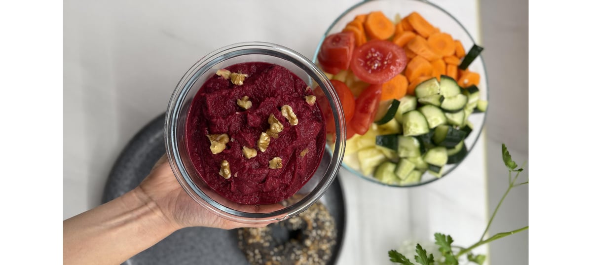 - 1Az elkészítéshez a főtt céklát, a lecsöpögtetett csicseriborsót, a tahinit, a citromlevet, a sót és a borsot tegyük egy késes aprítóba (vagy nagy teljesítményű turmixgépbe). Kezdjük el turmixolni a keveréket.