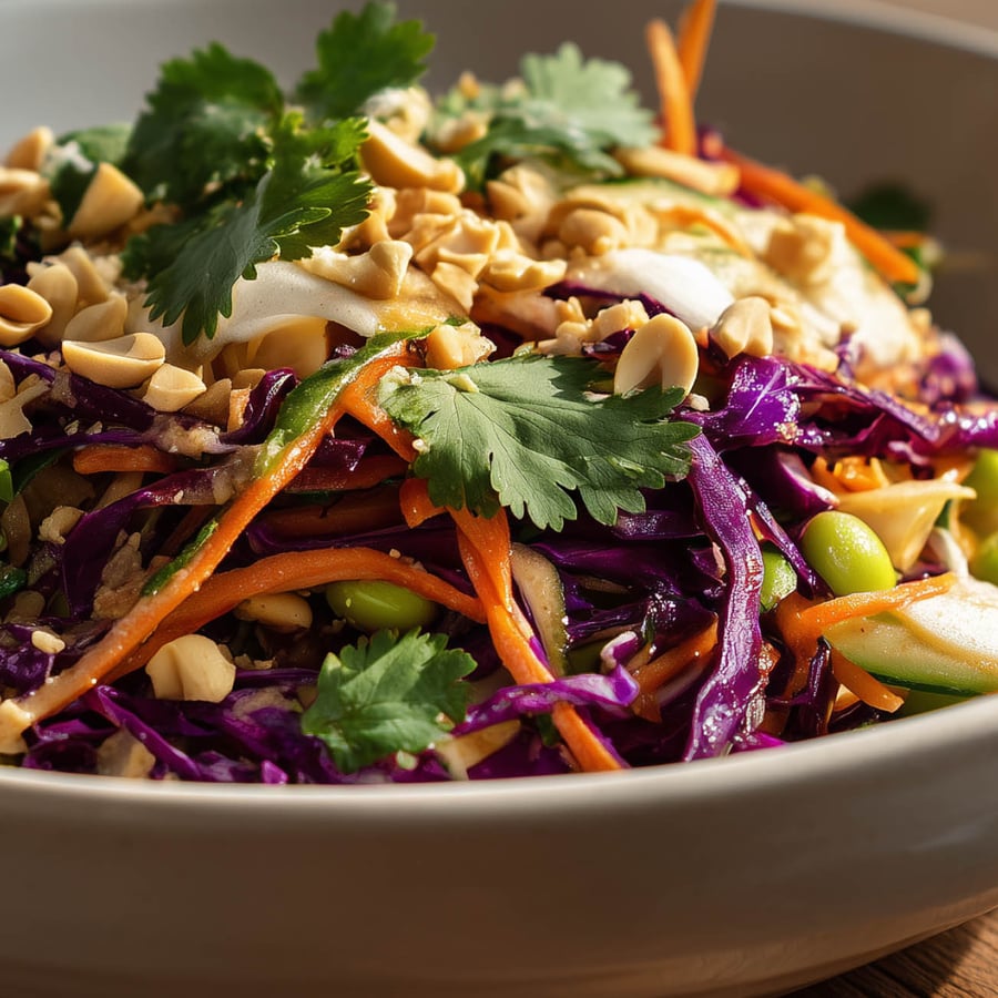 - 5A földimogyorót és a koriandert durvára vágjuk, majd a saláta tetejére szórjuk, és azonnal tálaljuk.