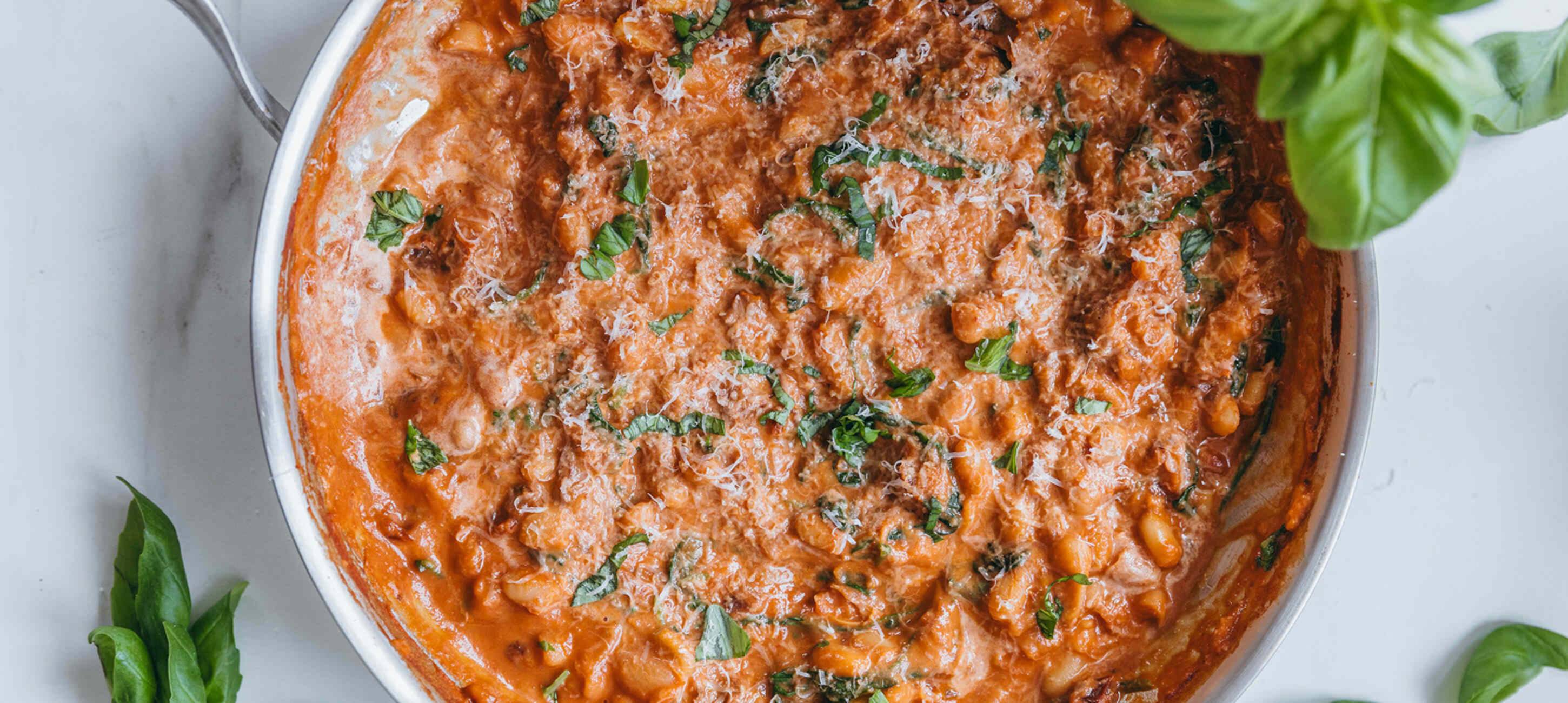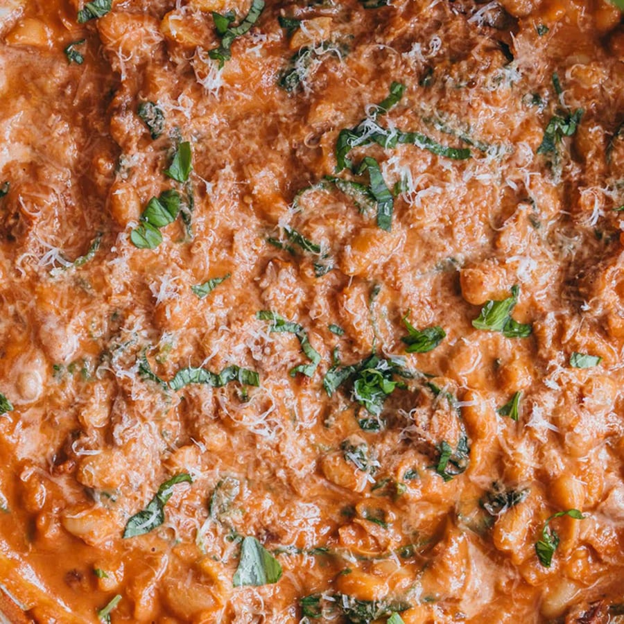 - 2Püré és folyadékok: Add a serpenyőbe a paradicsompürét, és folyamatos kevergetés mellett pirítsd egy percig. Ezután öntsd fel a passzatával, az alaplével, és add hozzá a leöblített babot is. Alaposan keverj össze mindent.