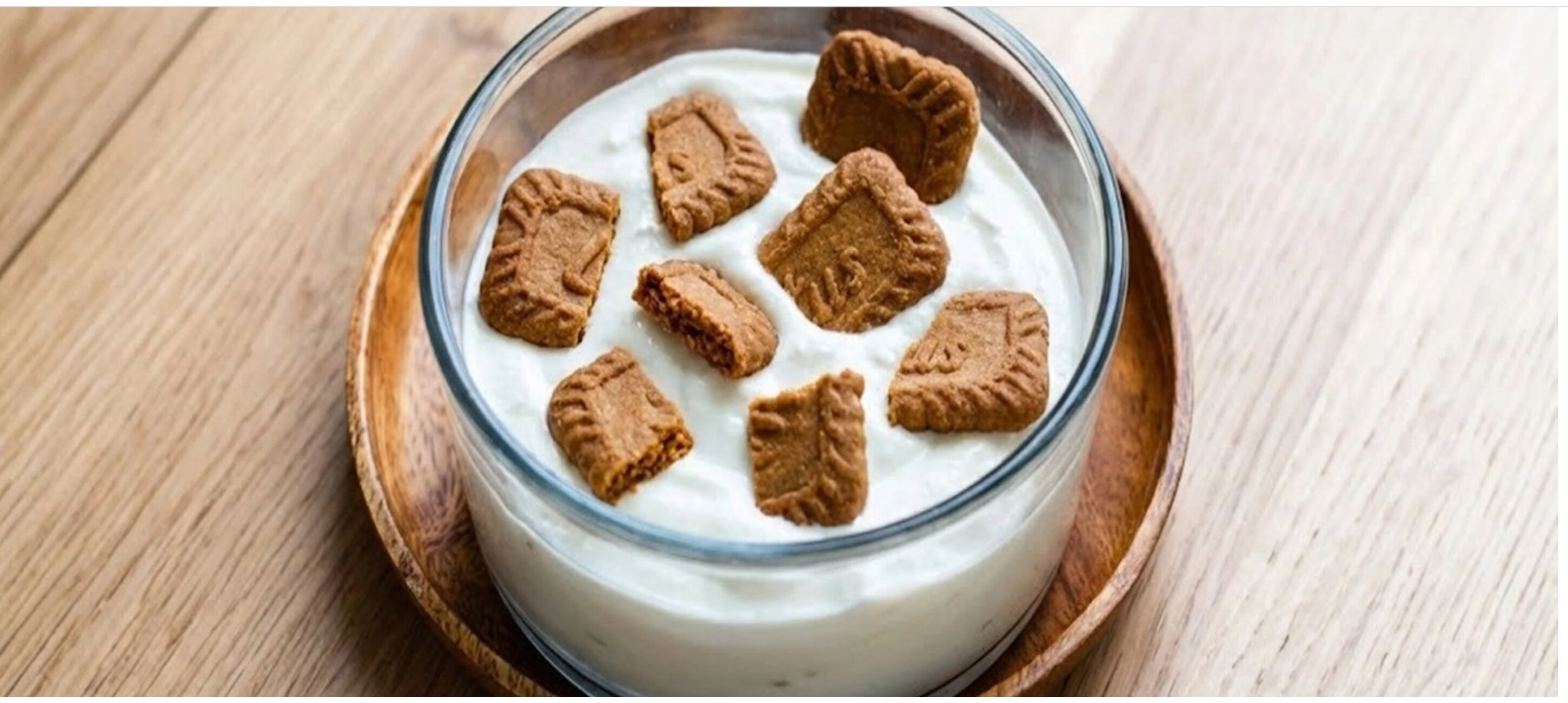 - 2Szúrj a joghurtba függőlegesen annyi kekszet, amennyi csak belefér. A kekszek között csak minimális helyet hagyj. Minél több kekszet adsz hozzá, annál intenzívebb lesz a karamellás íz, és sűrűbb a desszert állaga.