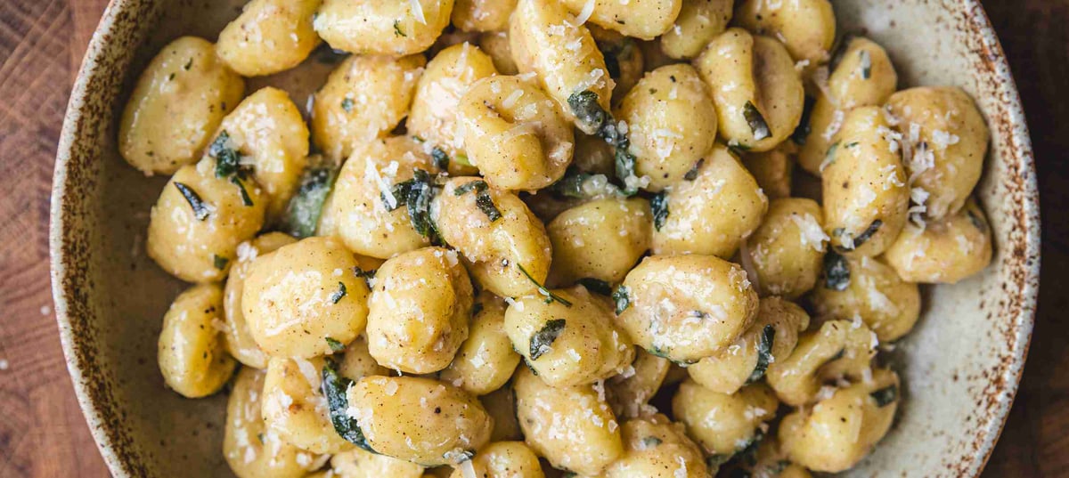- 3Amikor a víz felforrt, add hozzá a gnocchit. Amint felúsznak a felszínre, azonnal vedd ki őket az edényből, és add közvetlenül a vajas serpenyőhöz. Keverd meg, szórd meg finomra reszelt parmezánnal, és óvatosan forgasd össze. A kész szósznak fényesnek és bársonyosnak kell lennie; ha túl sűrű, adj hozzá egy keveset a gnocchi főzővizéből.