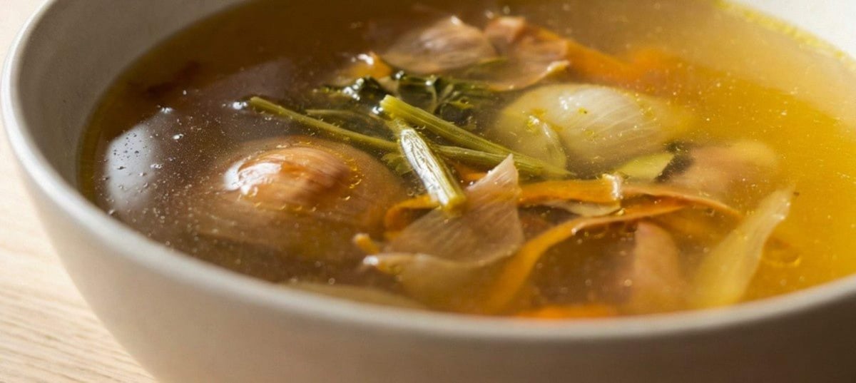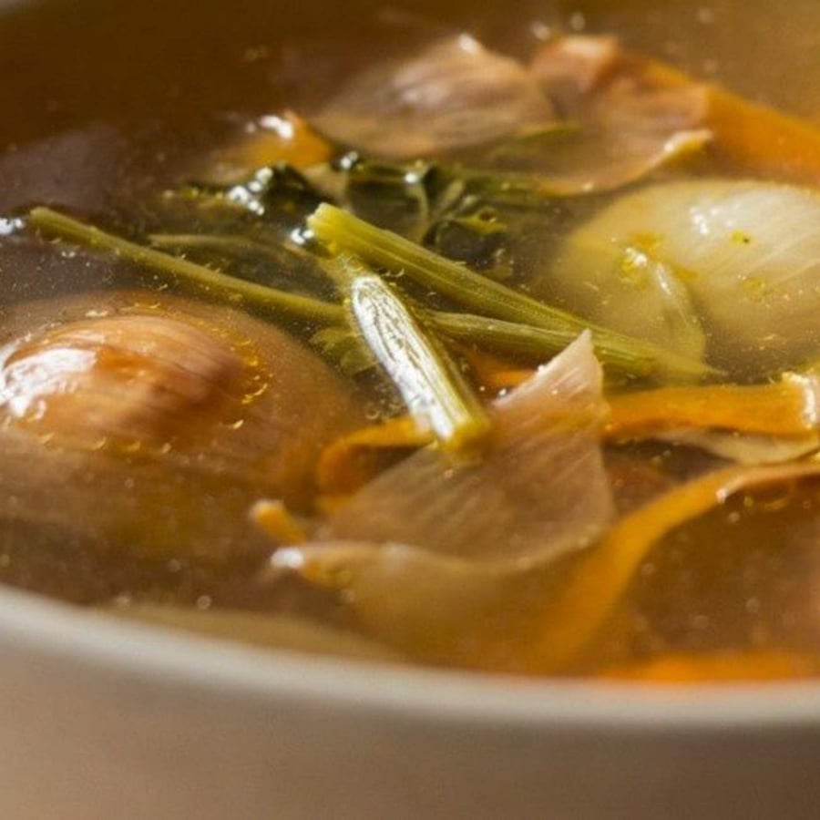 - 1Alaposan mossuk meg a zöldségmaradékokat. A vöröshagymát vágjuk félbe (a tiszta, külső héját hagyjuk rajta, mert szép színt ad az alaplének).