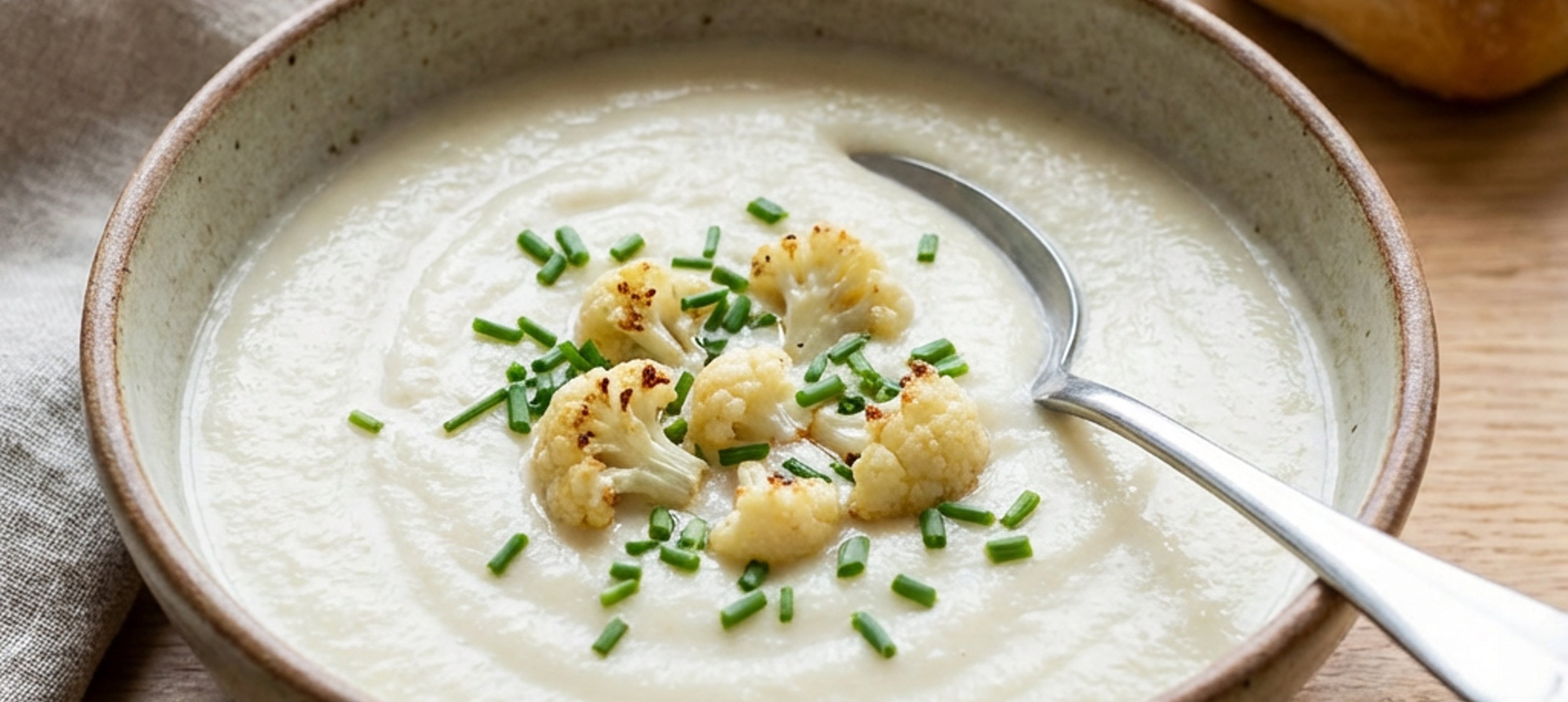 - 6Tipp: A levesbetétnek szánt karfiolrózsák maradjanak roppanósak, ne főzzük őket túl. Ügyeljünk rá, hogy a rántás ne barnuljon meg, a levesnek fehérnek kell maradnia. A hideg vaj a végén selymesebbé teszi az állagot, de ilyenkor már ne forraljuk a levest.