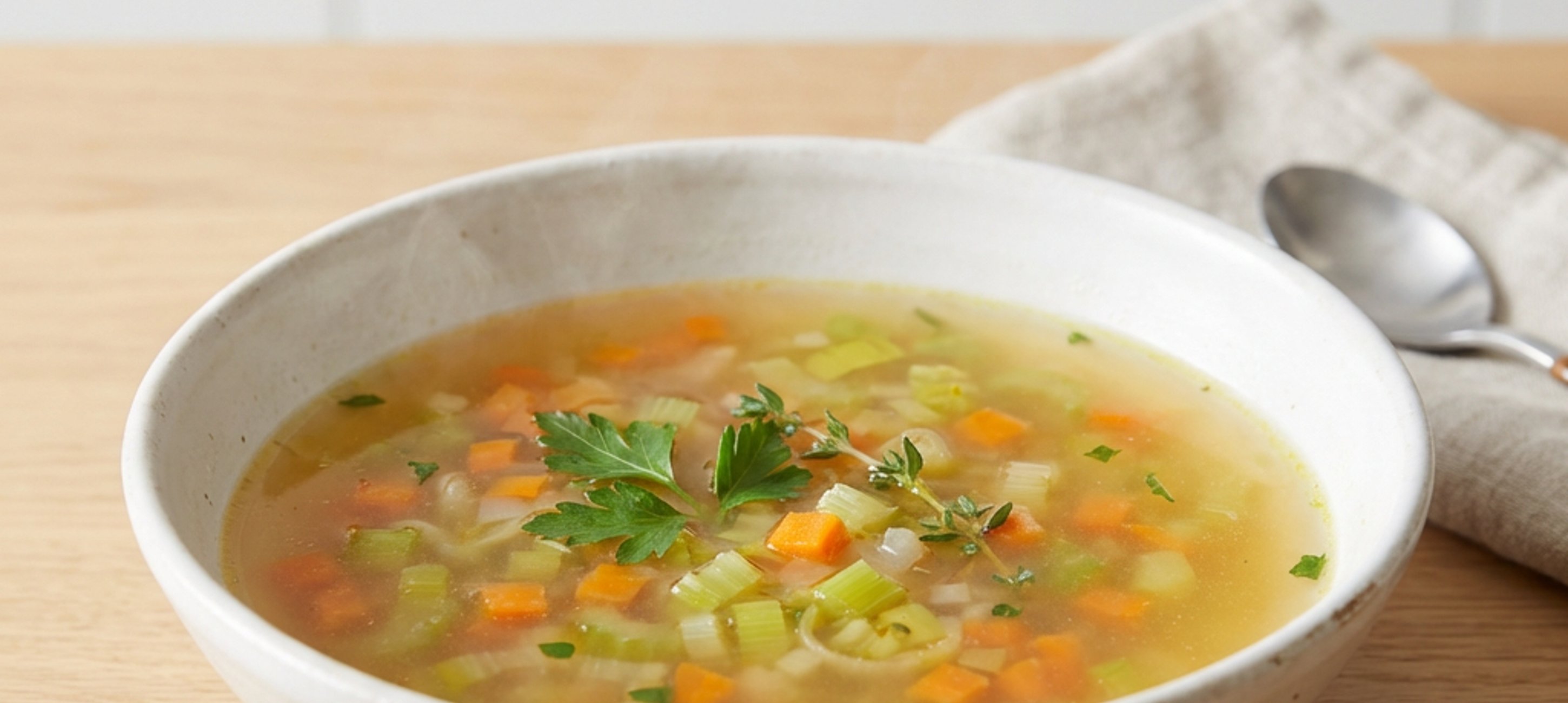 - 7A levest azonnal tálalhatjuk, vagy jeges fürdőben gyorsan lehűtve hűtőbe tehetjük. A zsírmentesített leves hűtőben napokig, fagyasztóban hónapokig eláll. Minél finomabbra vágjuk a zöldségeket, annál több ízt és színt adnak a levesnek. A csontok elősütése mélyebb, intenzívebb ízt kölcsönöz a levesnek. Soha ne kevergessük főzés közben, hogy tiszta maradjon.