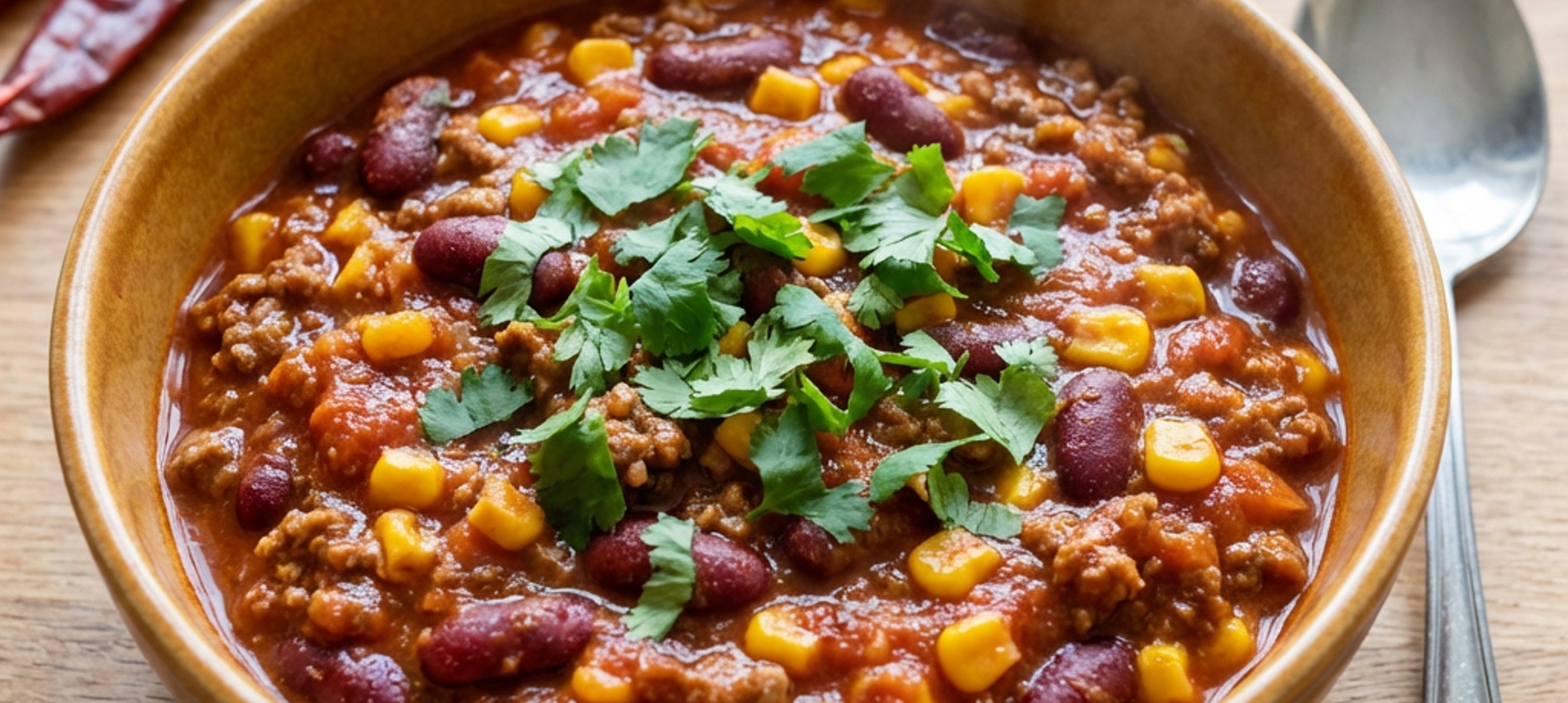 - 5A Chili con carnét tálald főtt rizzsel vagy bulgurral. Tálalás előtt minden adagot díszíthetsz durvára vágott friss korianderrel.