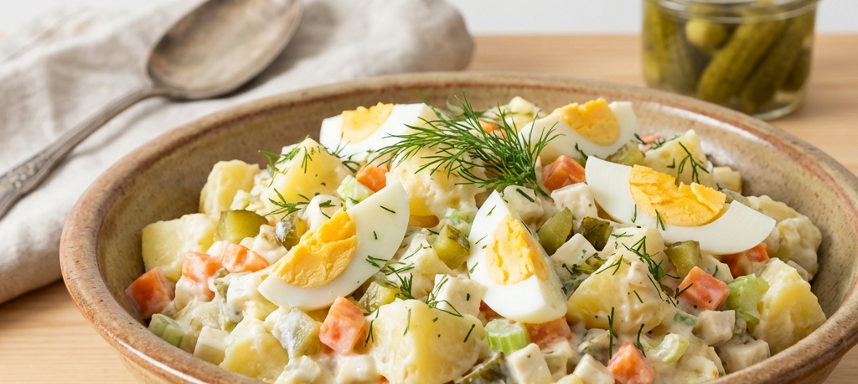 - 1A megtisztított burgonyát héjában, sós vízben puhára főzzük, majd leszűrjük és még langyosan meghámozzuk. A sárgarépát, a zellert és a petrezselyemgyökeret szintén majdnem puhára főzzük, majd hagyjuk kihűlni.