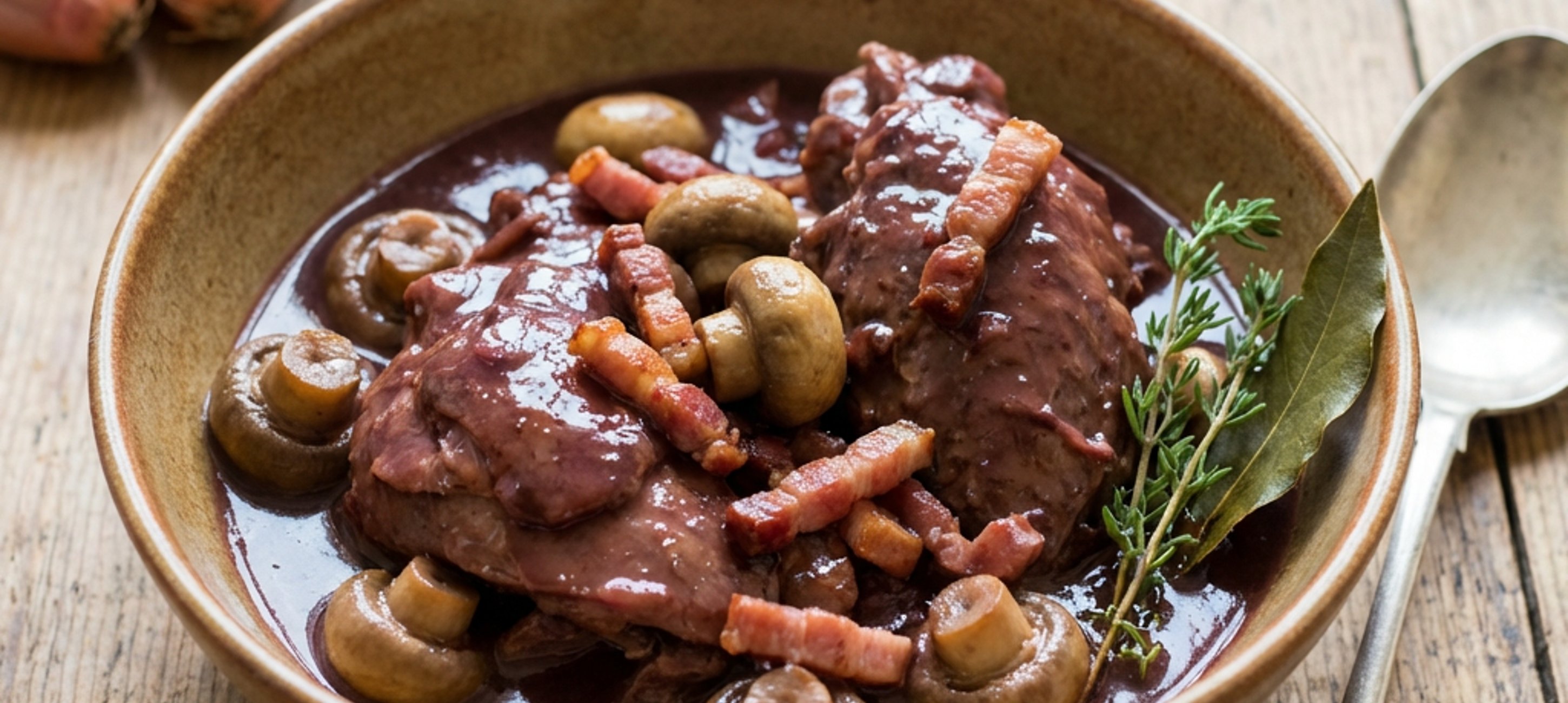 - 6Egy nagy öntöttvas edényben süssük ki a kockára vágott szalonna zsírját, adjuk hozzá a vajat, majd a húsdarabokat süssük először a bőrös felükkel lefelé aranyszínűre minden oldalon. Vegyük ki a húst és tegyük félre.