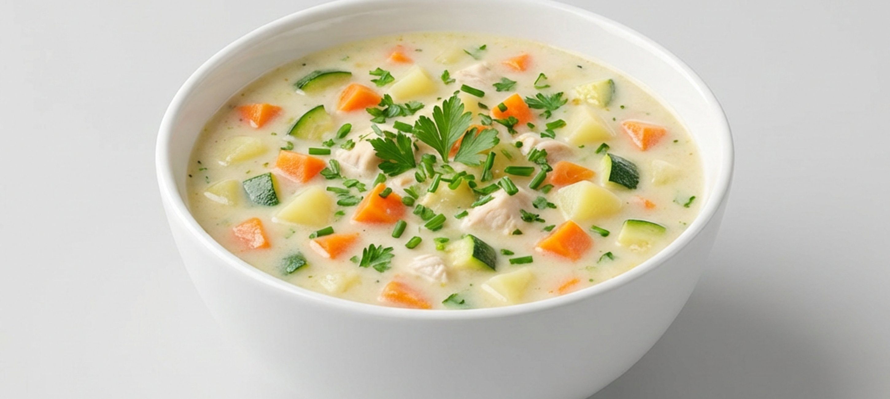 - 4A főtt csirkehúst vágja vagy tépkedje kisebb darabokra, és tegye a levesbe melegedni. A sárgarépát, a cukkinit és a burgonyát vágja apró, kb. 0,5 cm-es kockákra.