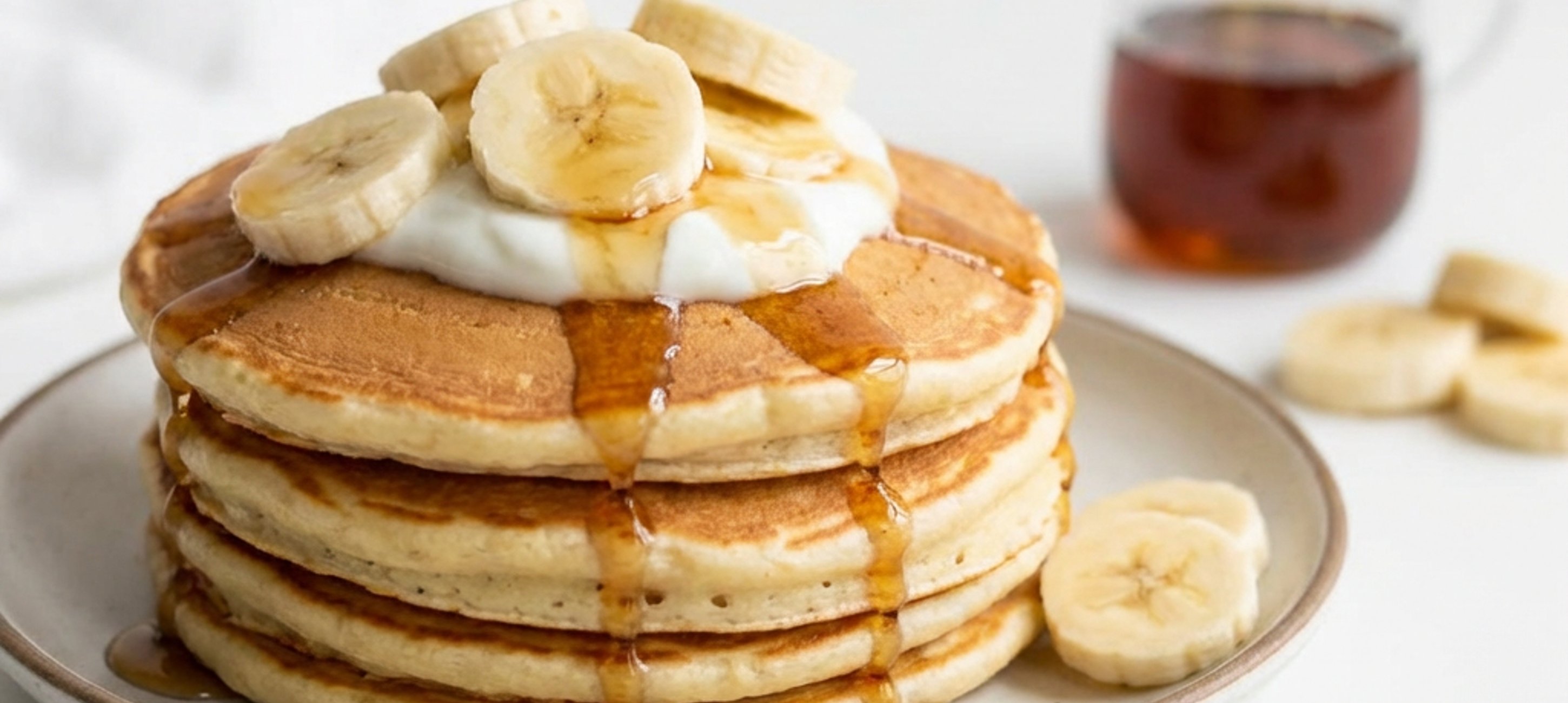 - 4A kész palacsintákat tálald natúr joghurttal és juharsziruppal leöntve, a tetejüket pedig szórd meg egy kevés porcukorral.