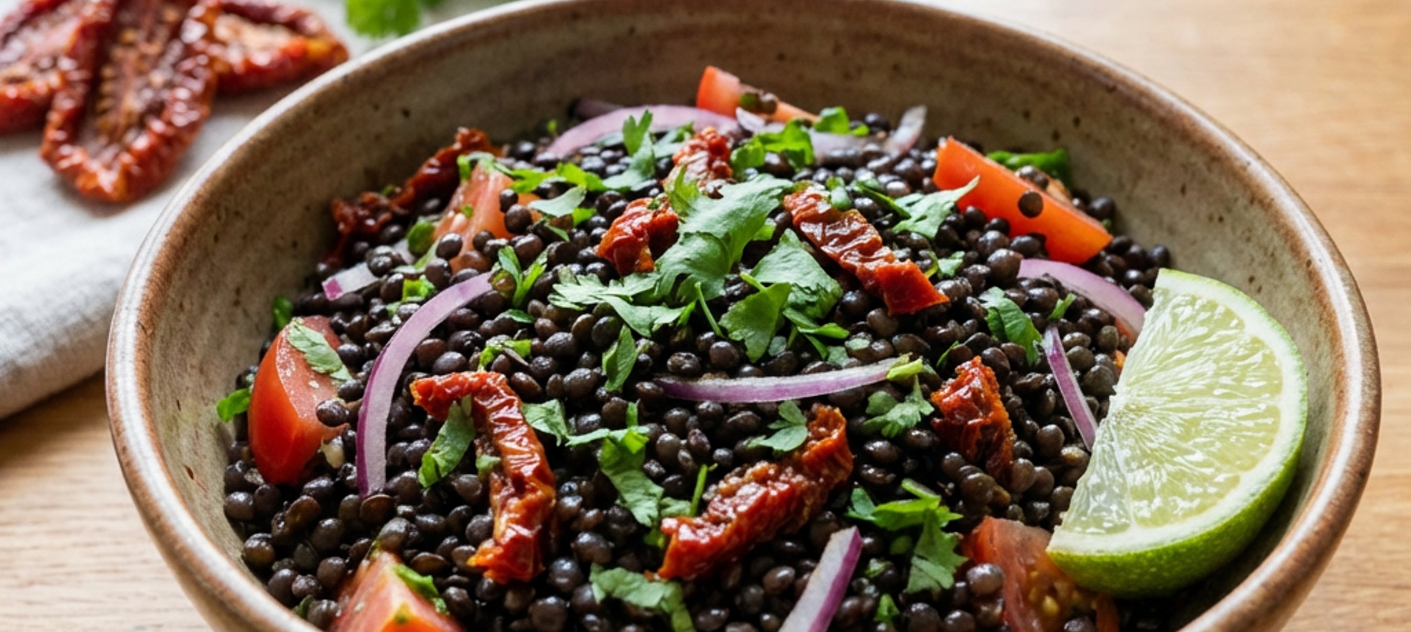 - 2Amíg a lencse fő, készítsd elő a többi hozzávalót: a koriandert és az aszalt paradicsomot vágd apróra, a friss paradicsomot kockázd fel, a lilahagymát pedig szeleteld vékony félkarikákra.