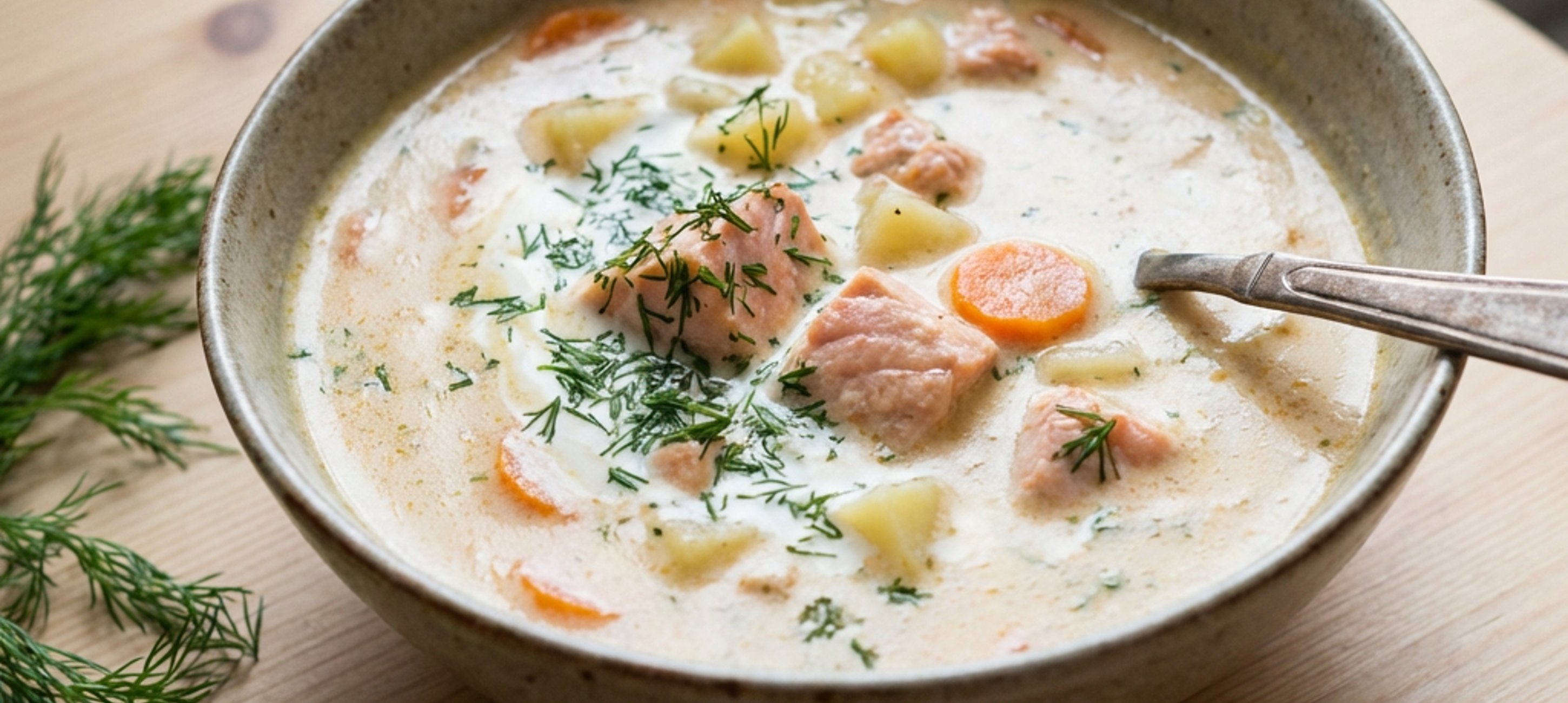 - 4Ha a zöldségek megpuhultak, öntsd a leveshez a tejszínt, add hozzá a lazackockákat és az aprított kaprot. Főzd további 3-4 percig közepes lángon, amíg a lazac omlósra sül.
