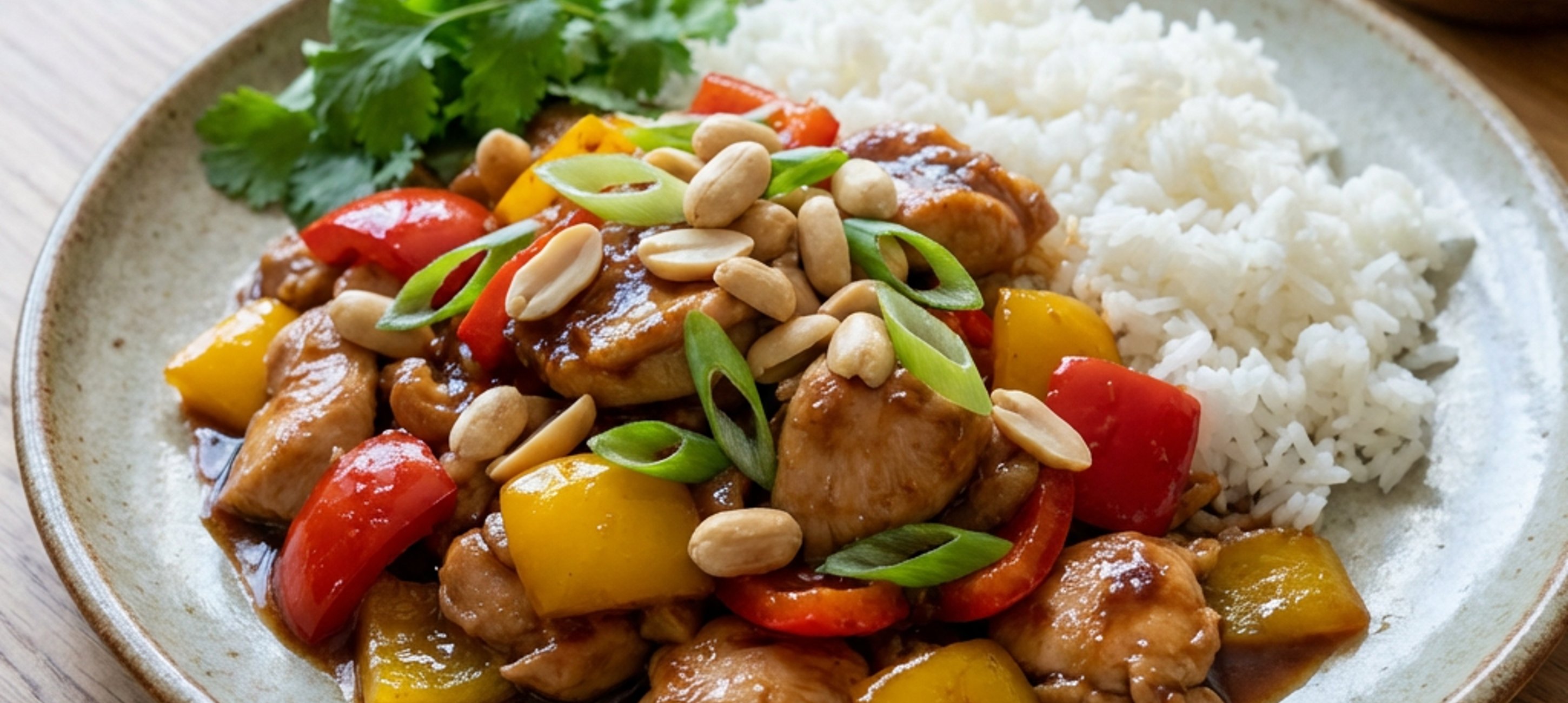 - 4A Kung Pao-t tálald főtt rizzsel. A tetejét díszítheted friss korianderrel és extra újhagymával is.