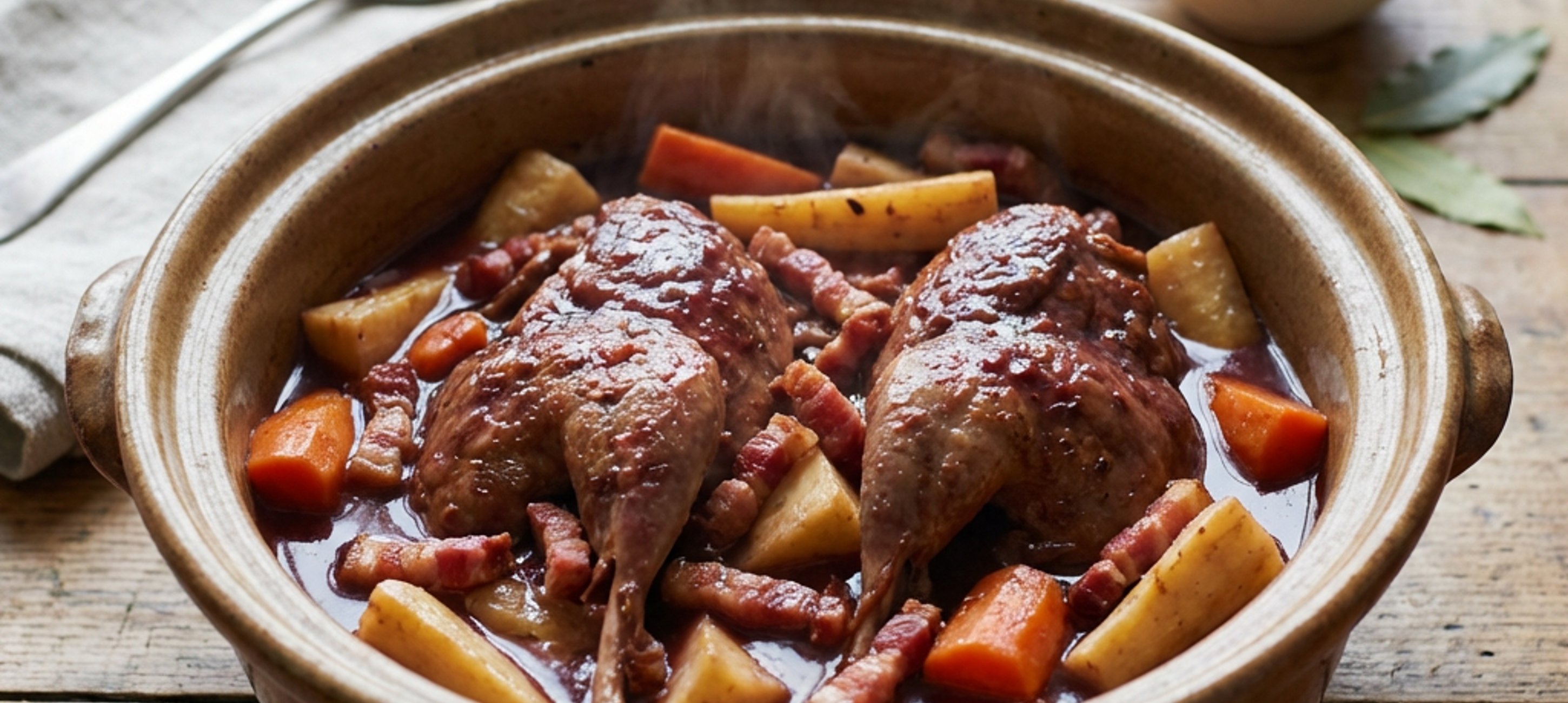 - 5Tedd vissza a fácándarabokat a lábasba, öntsd fel a vörösborral, és forrald fel. Vedd lejjebb a lángot, és főzd addig, amíg a mártás az eredeti térfogatának kétharmadára sűrűsödik.