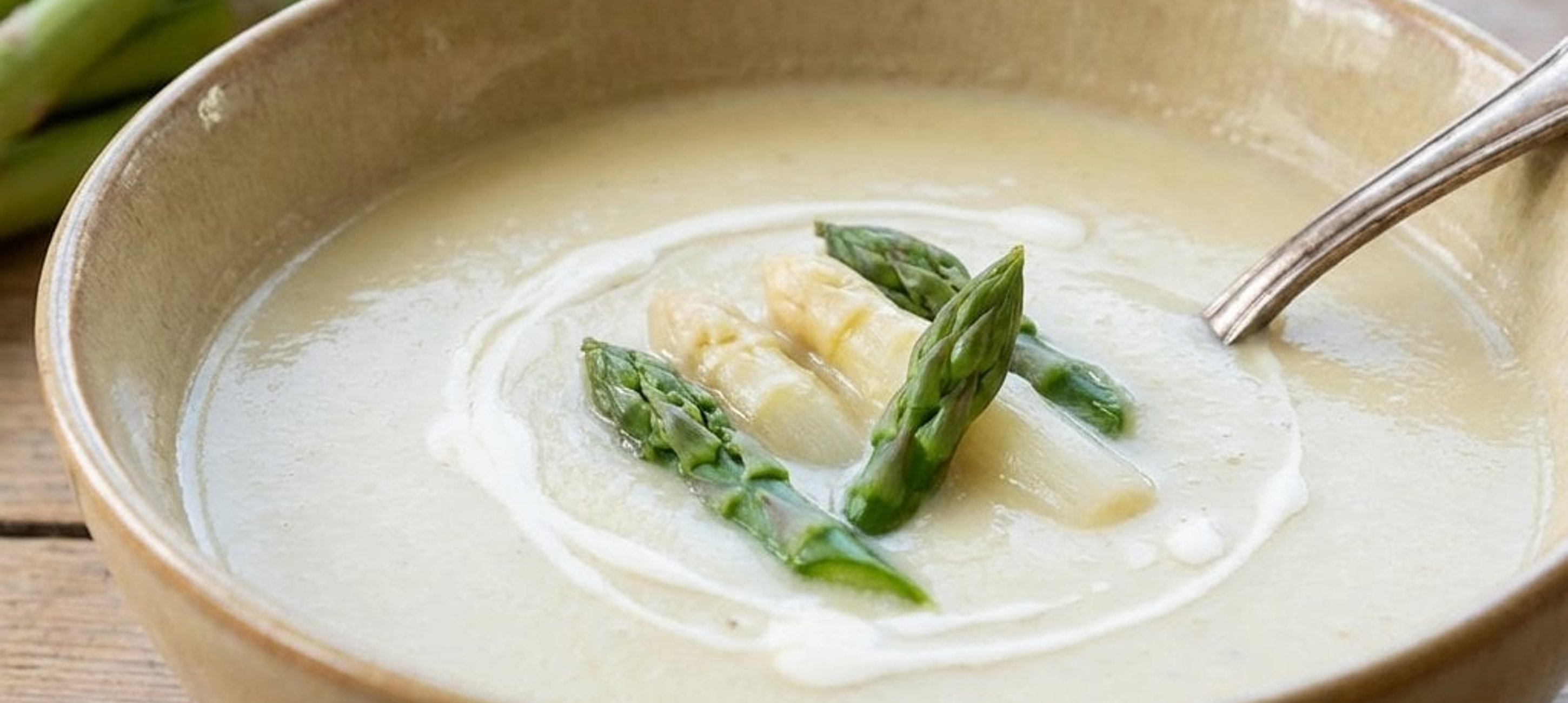 - 4Mérjünk ki 1 litert a spárga főzőlevéből. Adjuk hozzá a felvágott fehér spárgaszárakat, és botmixerrel vagy turmixgépben alaposan pürésítsük. A levest egy finom szűrőn keresztül passzírozzuk át egy tiszta lábasba.