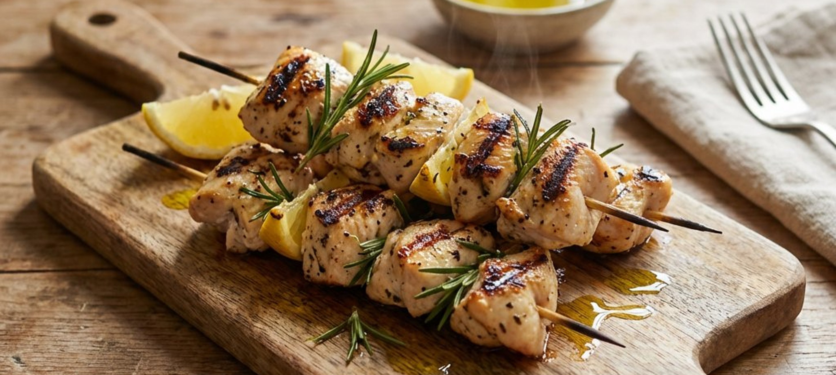 Süssük a nyársakat forró grillen, hogy a külseje ropogós, a belseje pedig szaftos maradjon. A rozmaringot érdemes apróra vágni, hogy jobban átadja az aromáját a pácna.