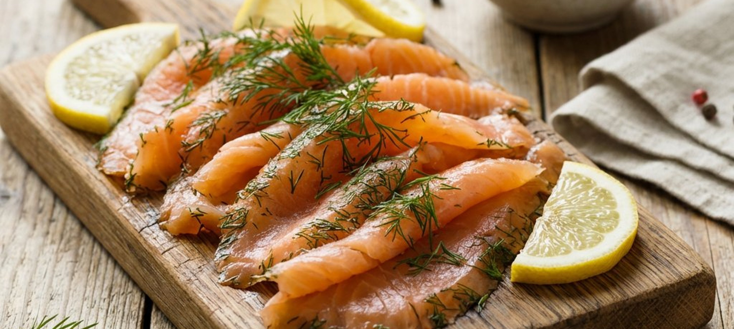 A gravlaxot tálalhatja friss kaporral díszítve, mustáros-kapros mártással és ropogós pirítóssal. Kiváló választás ünnepi asztalra!