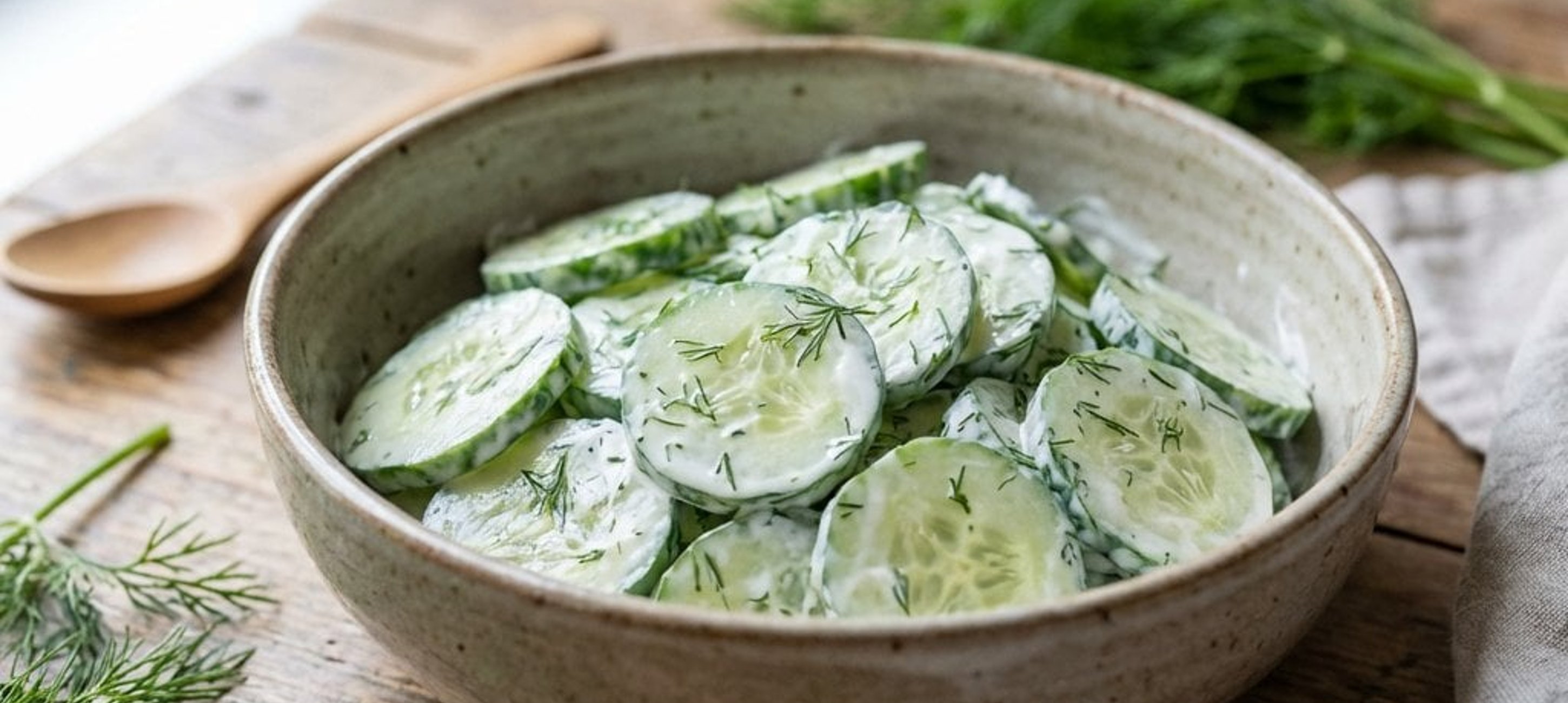 Tálalás előtt érdemes 15-20 percre hűtőbe tenni, hogy az ízek jól összeérjenek, de ne hagyjuk túl sokáig, mert az uborka levet engedhet és felhígíthatja a krémes öntetet.