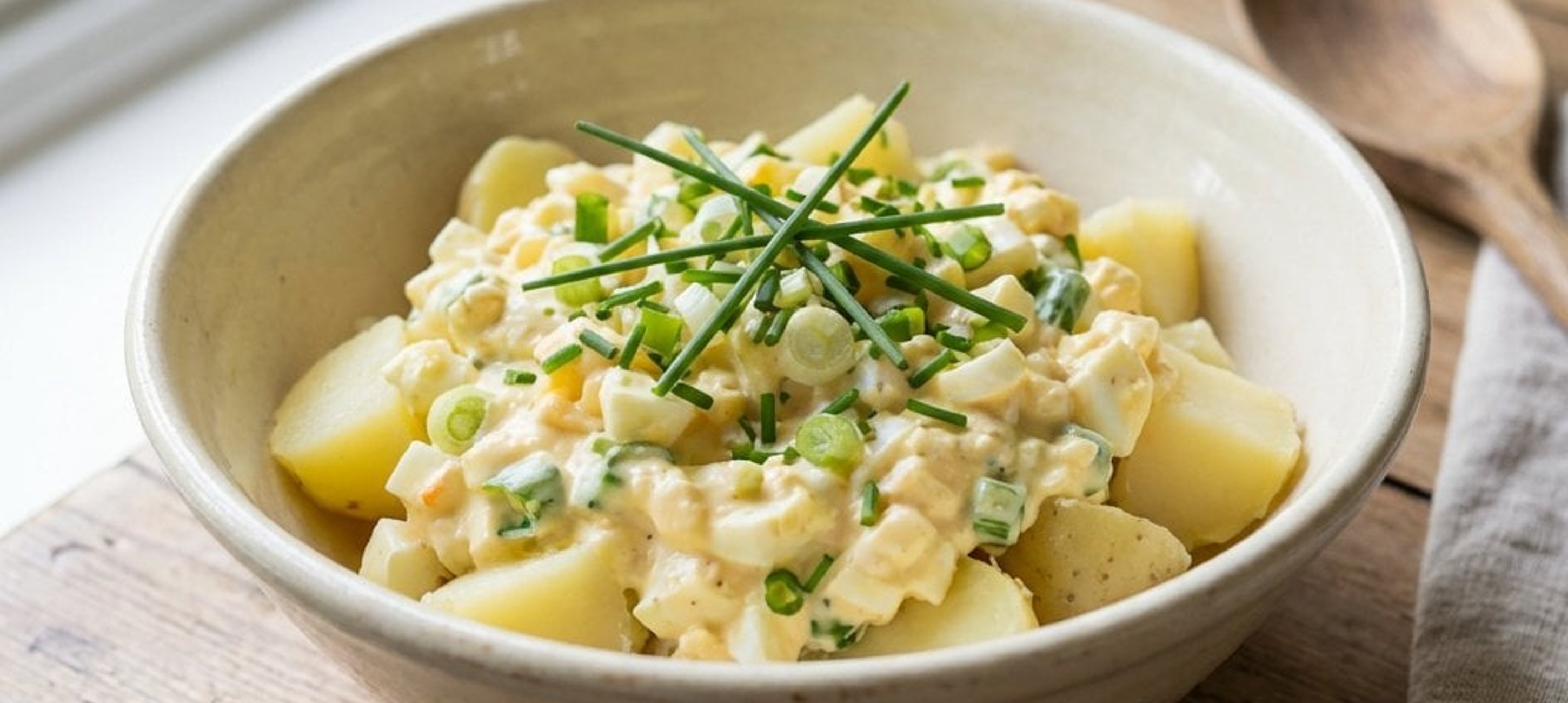 - 3Egy tálban óvatosan összeforgatjuk a felkockázott tojást, burgonyát és az újhagymát a majonézzel és a mustárral. Ízlés szerint sózzuk és borsozzuk. Tálalás előtt érdemes hűtőbe tennen, hogy az ízek összeérjenek.