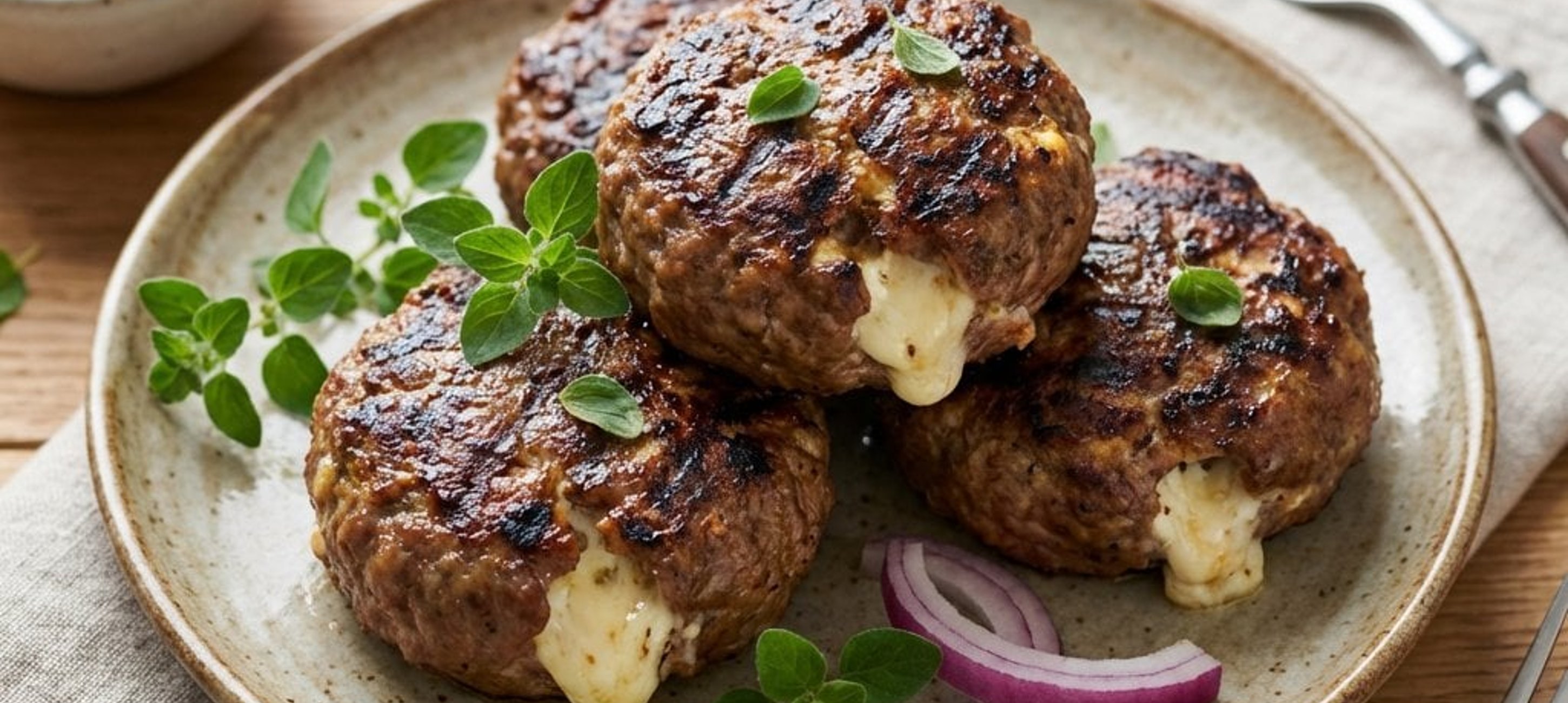 Tipp: A hús gyúrásakor ügyeljen rá, hogy ne dolgozza túl a masszát, így sütés után is szaftos marad. A feta sajtot érdemes alaposan körbezárni a hússal, hogy ne folyon ki sütés közben.