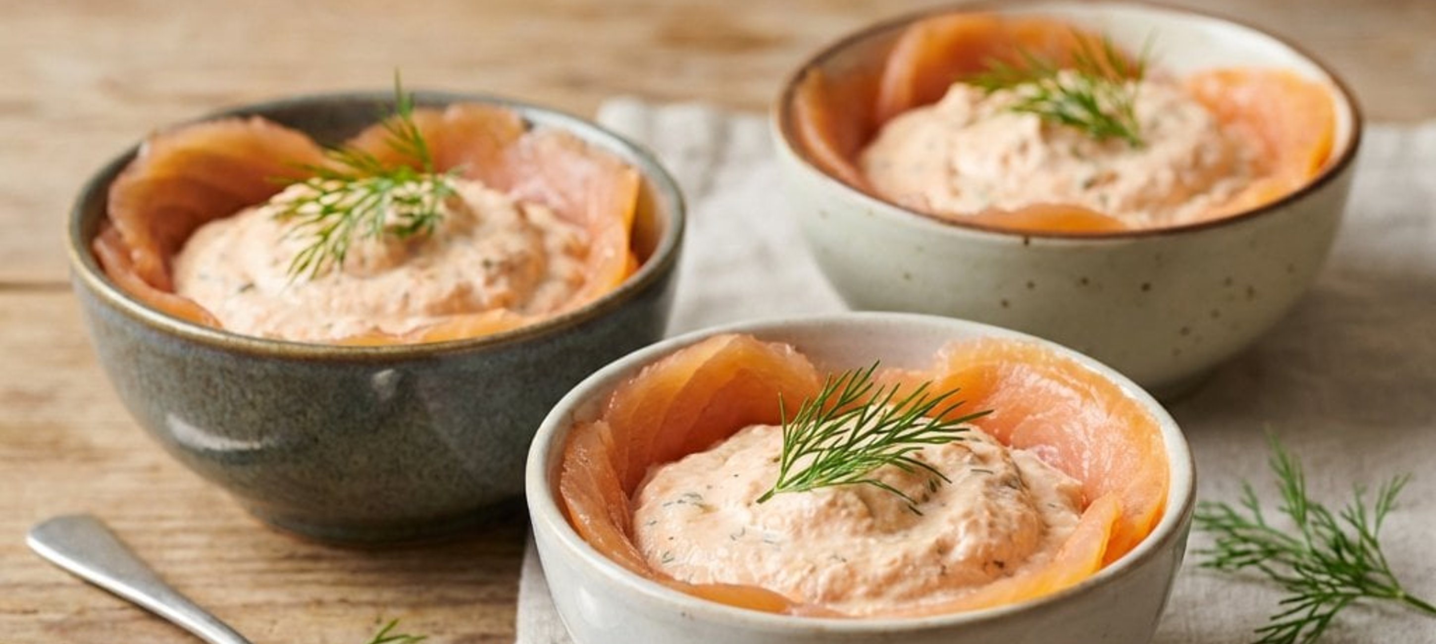 - 2Béleljünk ki kis tálkákat frissentartó fóliával úgy, hogy a szélei túllógjanak. Rakjuk ki a tálkák alját és oldalát a maradék lazacszeletekkel úgy, hogy fedjék egymást és kicsit lógjanak ki a tálkából. Töltsük meg a tálkákat a sajtos krémmel.