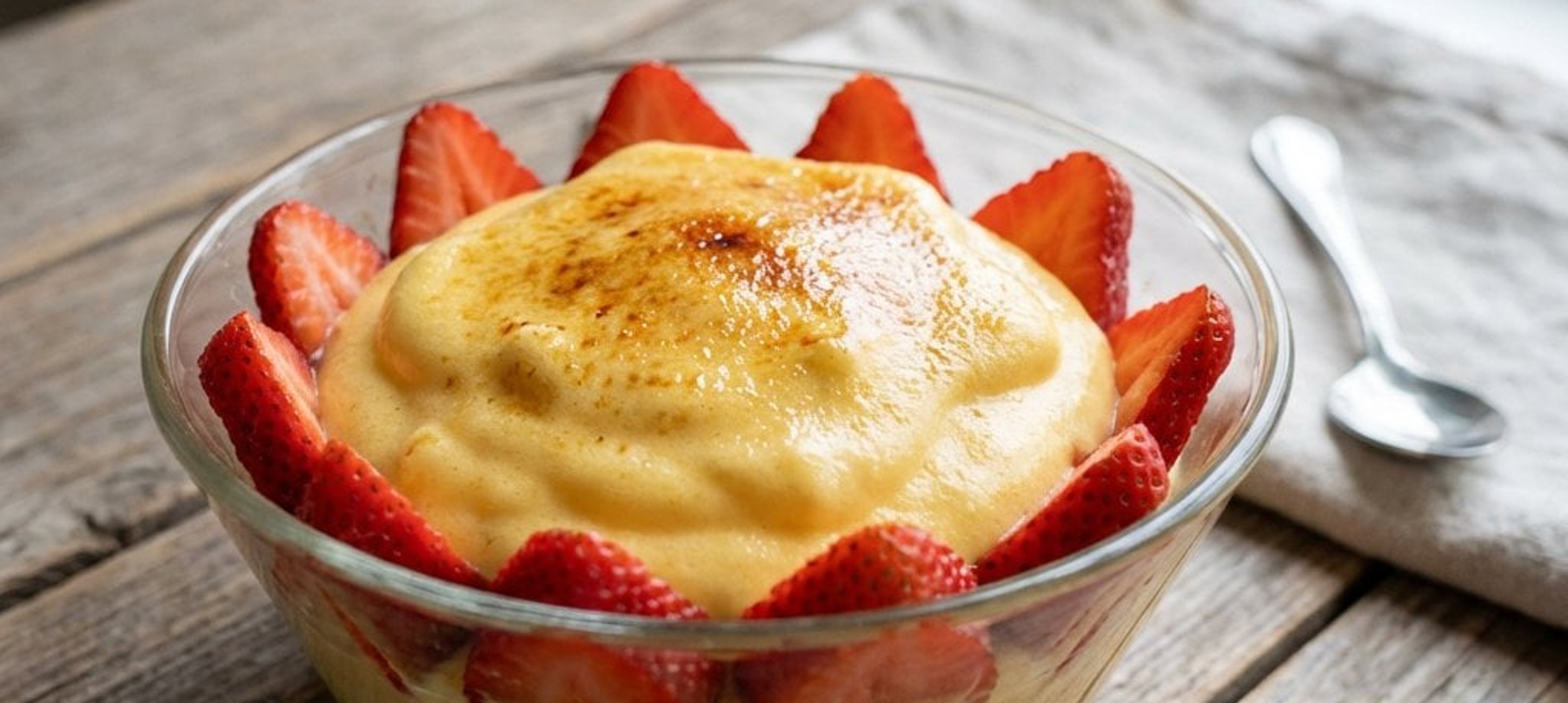 - 5Tálaláskor helyezzünk egy desszertes tányérra egy tálalógyűrűt, töltsük meg az édesített eperrel, majd öntsük köré a frissen elkészült Sabayon krémet. Távolítsuk el a gyűrűt. A krém tetejét ízlés szerint konyhai fáklyával enyhén karamellizálhatjuk.