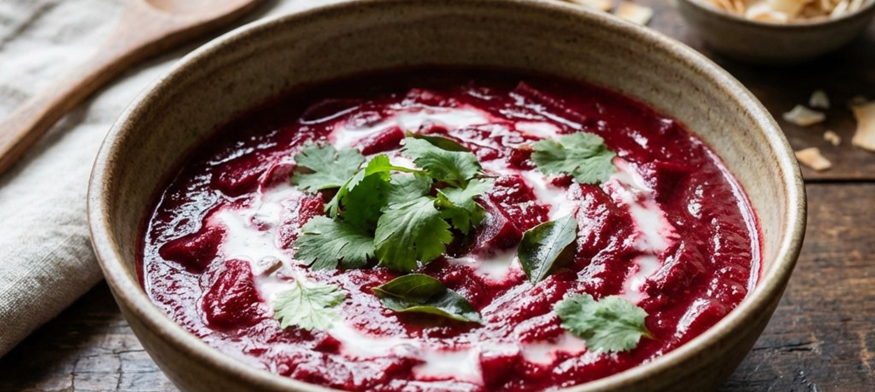 - 3Öntsük fel a kókusztejes vízzel, keverjük meg és forraljuk fel. Vegyük a lángot alacsonyra, és időnként megkeverve főzzük 6-8 percig, vagy amíg a cékla megpuhul.