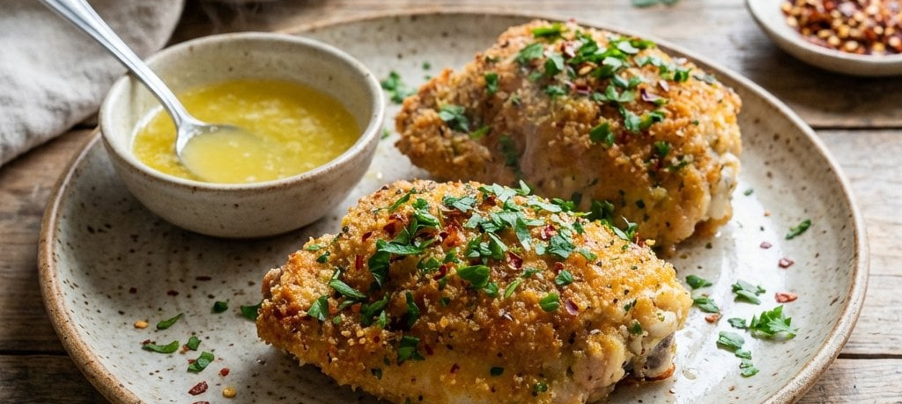 A csirke megfordításához használjon lapos húslapátot, hogy a morzsa ne essen le.