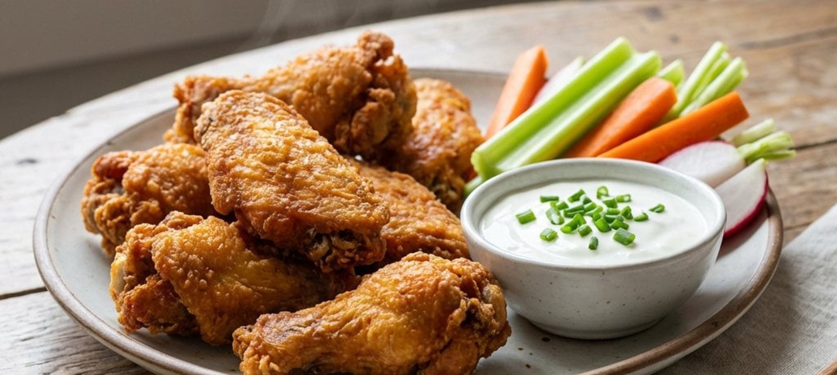 - 2A fokhagymát átpréseljük, és elkeverjük a tejföllel, valamint az apróra vágott snidlinggel. Ízlés szerint sózzük, borsozzuk. A sült szárnyakat a friss zöldséghasábokkal és a mártogatóssal tálaljuk.
