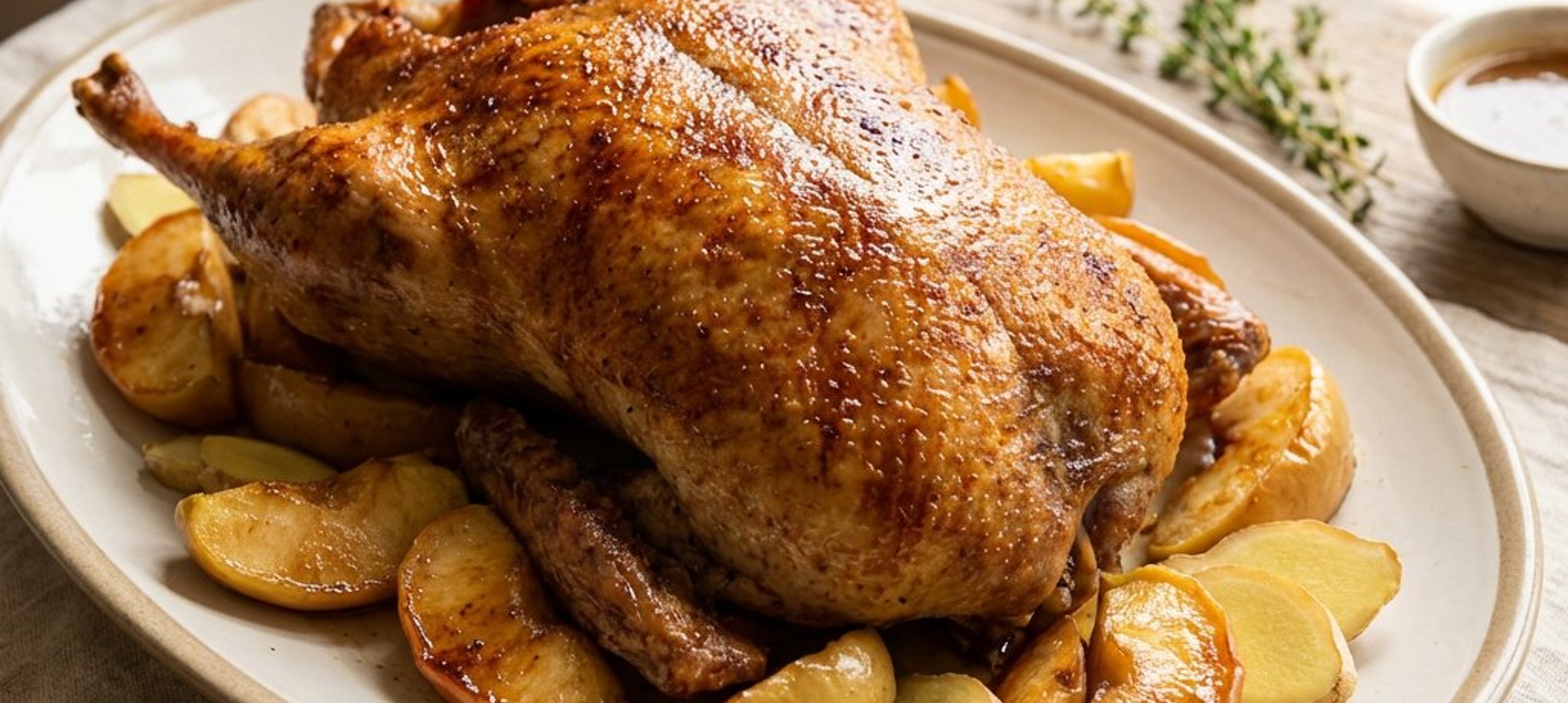 A kacsa sütésekor a szárnyvégek a tepsi alján nemcsak a leégéstől védik a húst, hanem mélyebb színt és intenzívebb ízt adnak a mártásnak. Tálalás előtt hagyja a húst 10 percig pihenni, hogy a nedvesség egyenletesen eloszoljon.