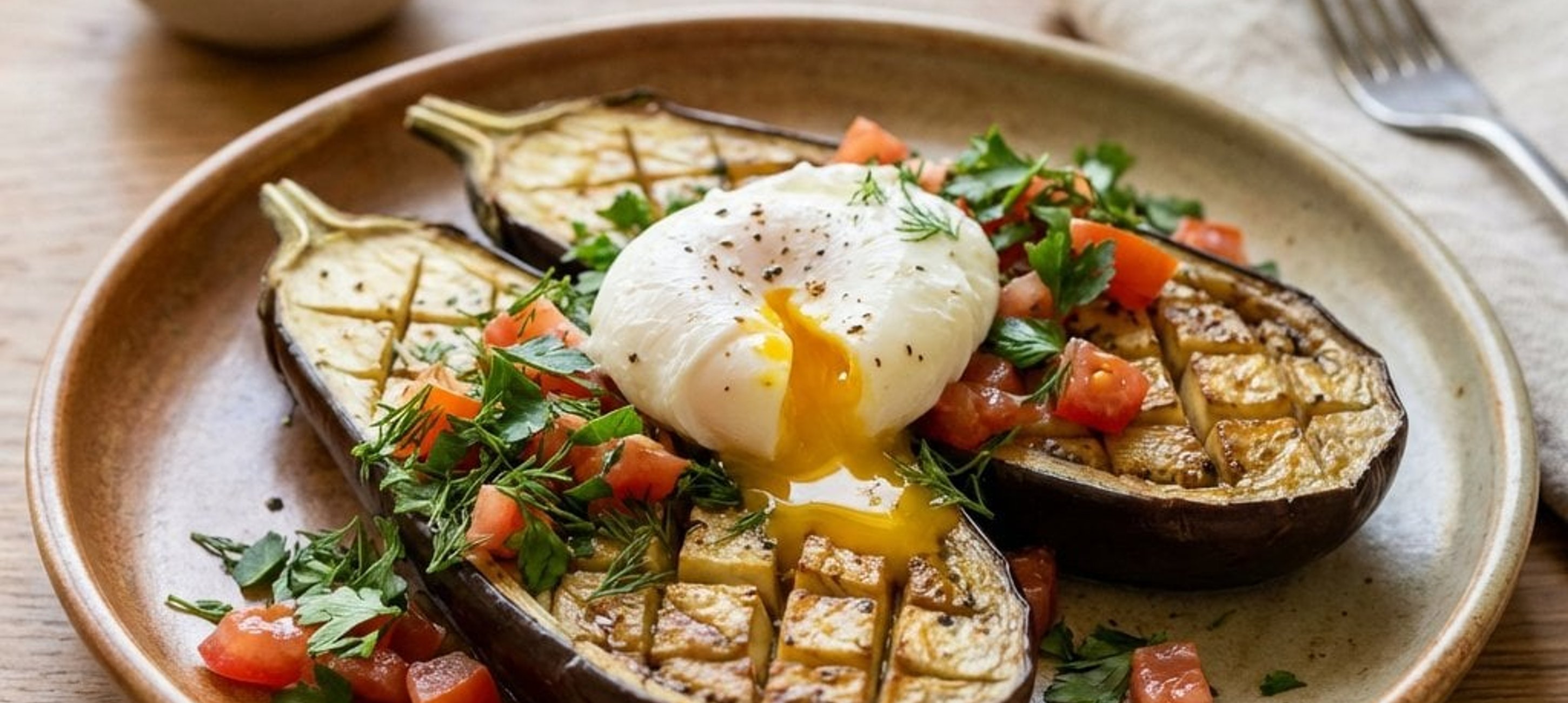 - 8Tálaláskor halmozzuk a padlizsános keveréket a tányérra, helyezzük rá a buggyantott tojást, enyhén sózzuk, borsozzuk, és szórjuk meg friss snidlinggel.