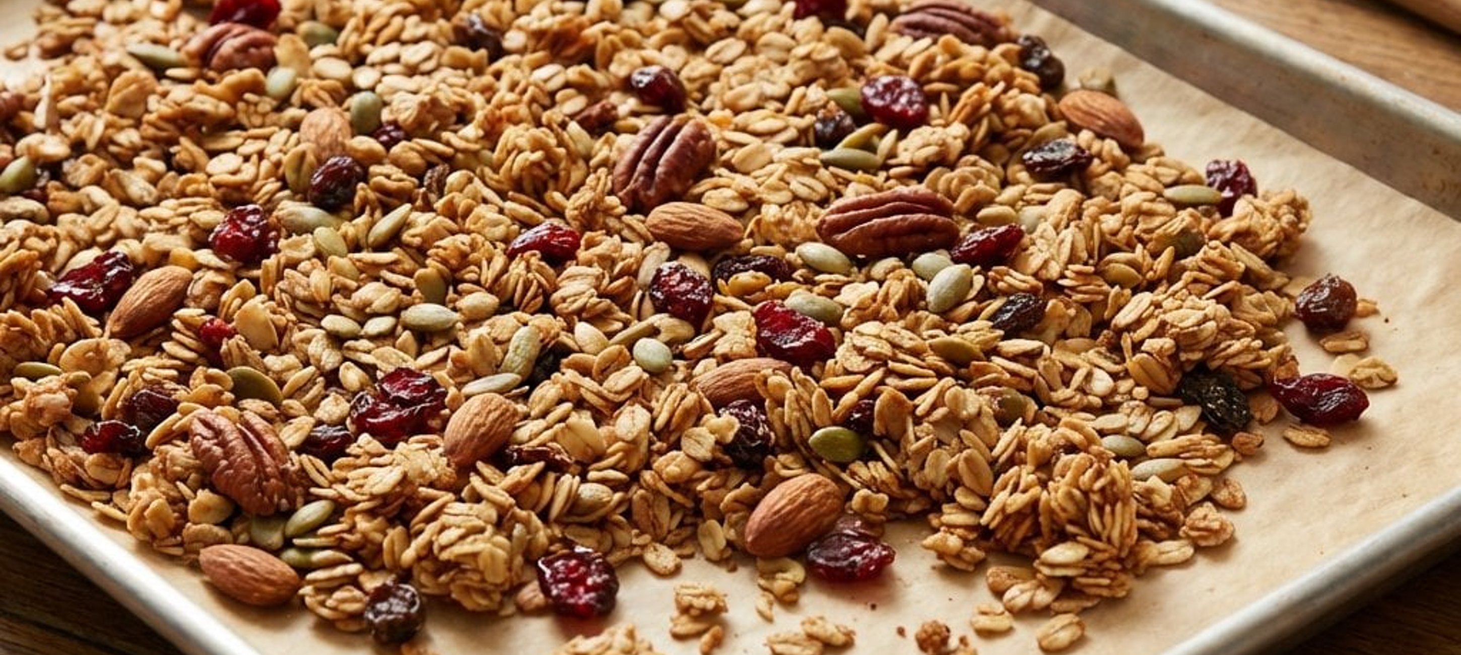 A házi granola titka a lassú hűlés: hagyd a tepsiben teljesen kihűlni, így lesz igazán ropogós és darabos!