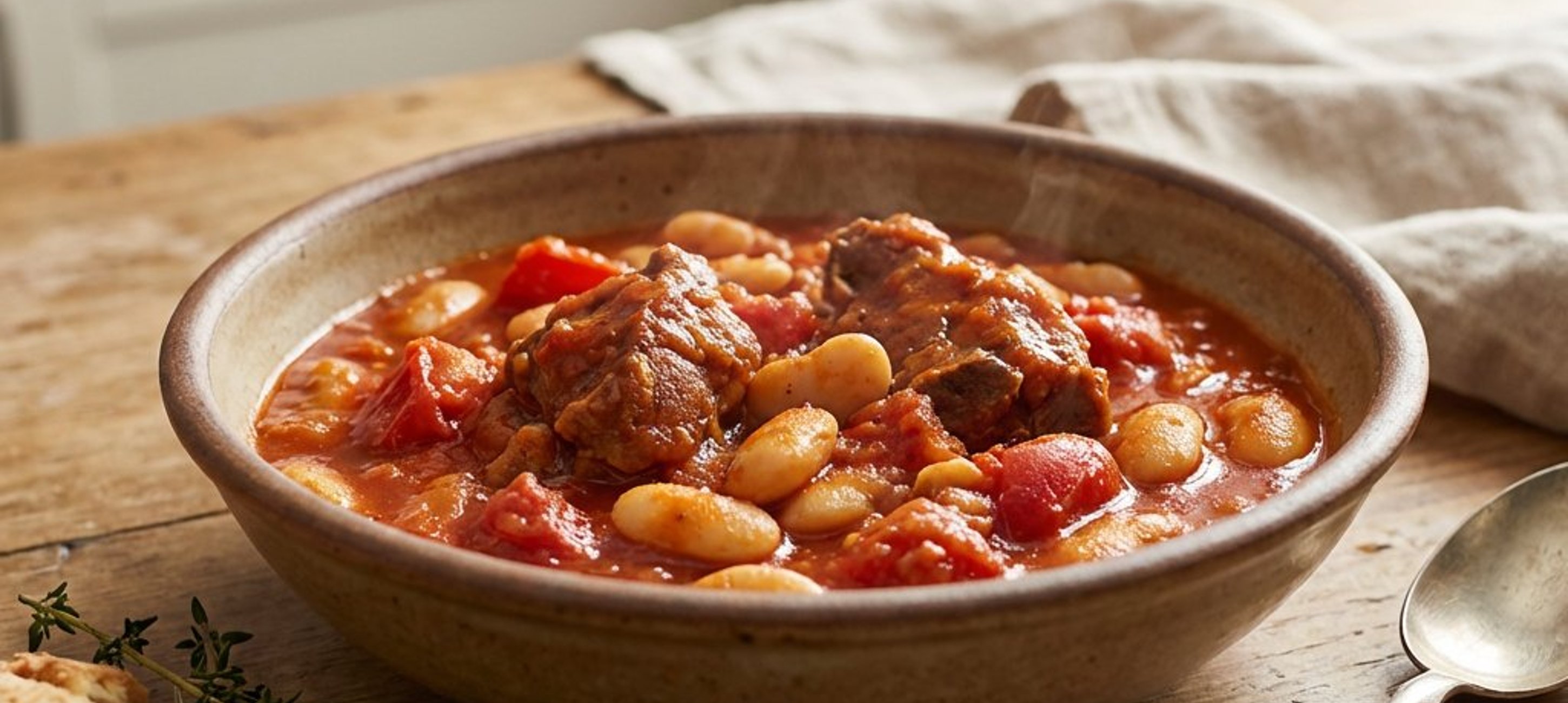 - 4Felöntjük 600 ml marha alaplével, felforraljuk, majd a lángot mérsékelve, lefedve, alkalmanként megkeverve kb. 50 percig pároljuk. Amikor a hús már majdnem puha, hozzáadjuk a főtt babot a félretett főzőlé felével együtt. Belekeverjük a fokhagymát is.