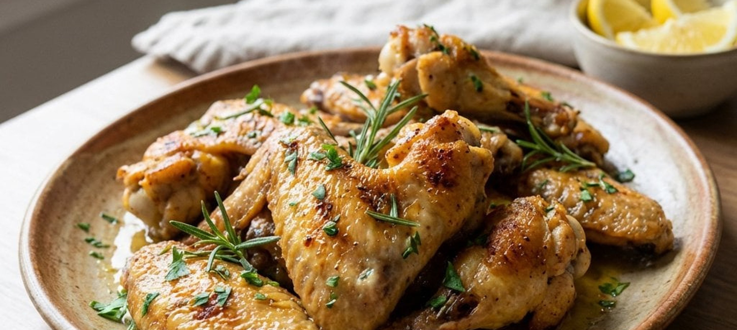 - 5Keverjük a finomra vágott petrezselymet a maradék páchoz, és a sütés vége előtt 3 perccel alaposan kenjük le vele a szárnyakat.