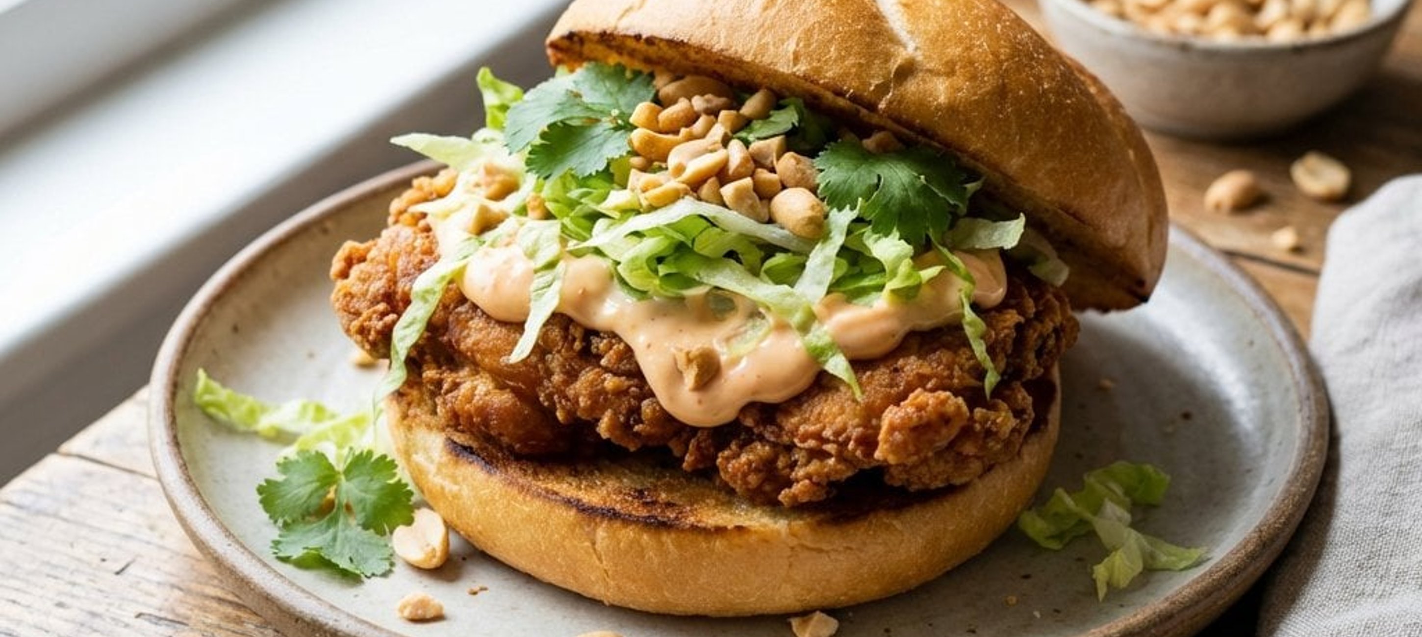 - 3A zsemléket vágjuk félbe, kenjük meg a vágott felületüket vajjal, és egy serpenyőben pirítsuk aranybarnára. A megpirult zsemléket kenjük meg az ízesített majonézzel. Helyezzük az alsó részre a húst, halmozzunk rá a salátából, majd fedjük le a zsemle tetejével.
