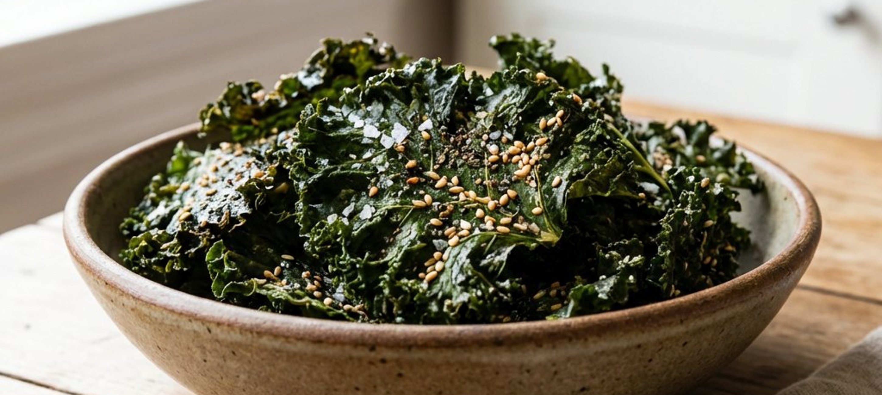 - 3A száraz kel leveleket forgassa bele az ízesített olajba, hogy mindenhol érje őket, majd terítse szét egy sütőpapírral bélelt tepsin úgy, hogy ne fedjék egymást. Szórja meg a tetejüket szezámmaggal.