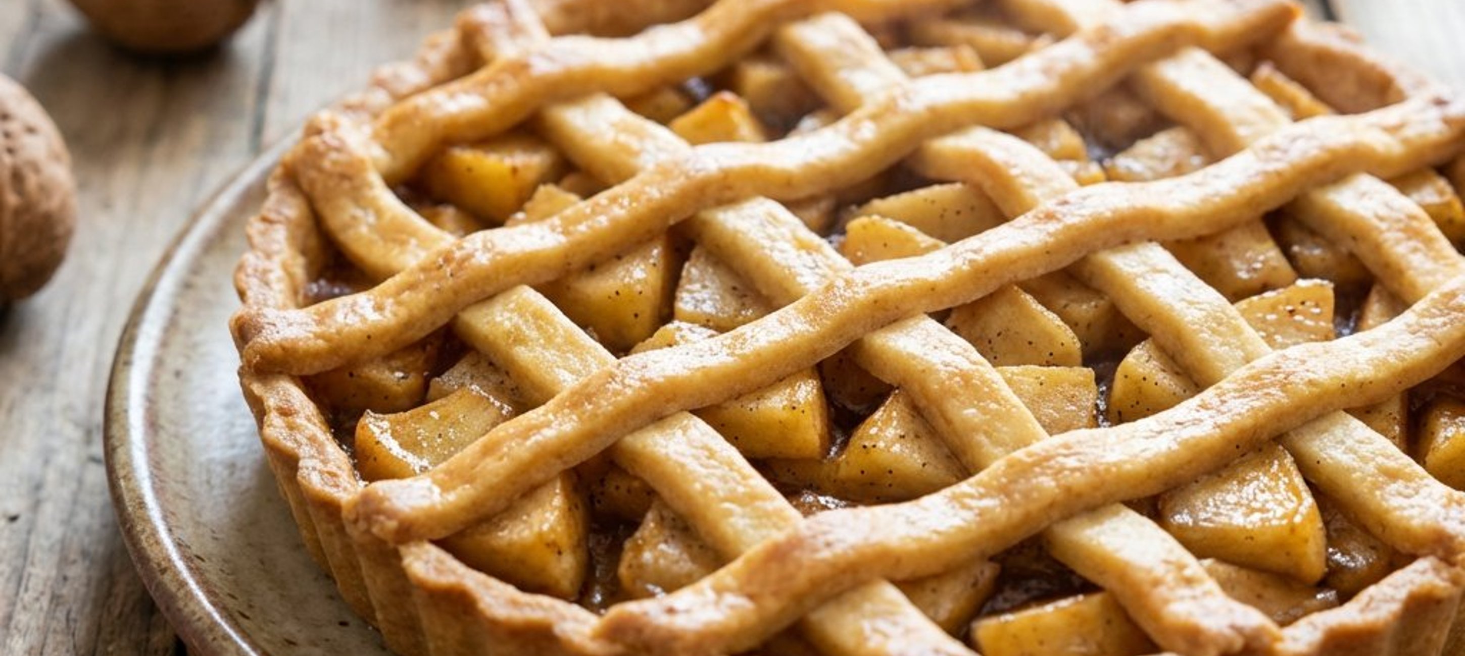 - 3A tészta másik felét lisztezett felületen nyújtsuk ki kb. 4 mm vastagságúra, vágjunk belőle 1,5 cm széles csíkokat, és rácsszerűen helyezzük el a pite tetején.