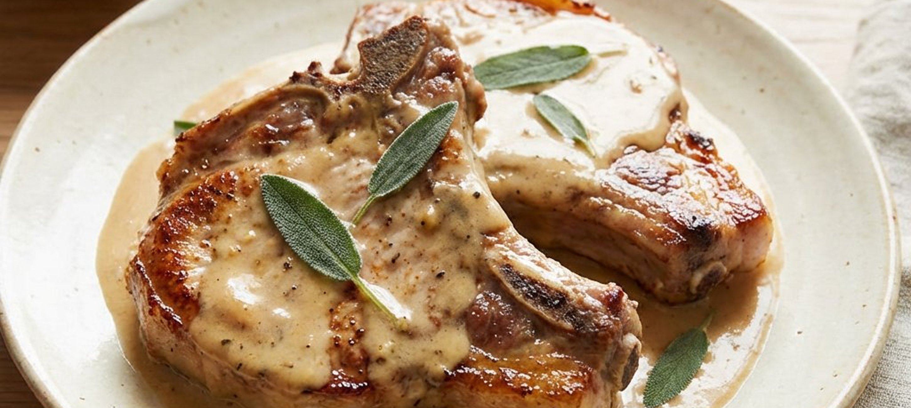 - 1Melegítsük elő a sütőt 160 °C-ra. A sertéskarajok szélét néhány helyen vágjuk be, hogy sütés közben ne kunkorodjanak fel, majd mindkét oldalukat sózzuk és borsozzuk meg.