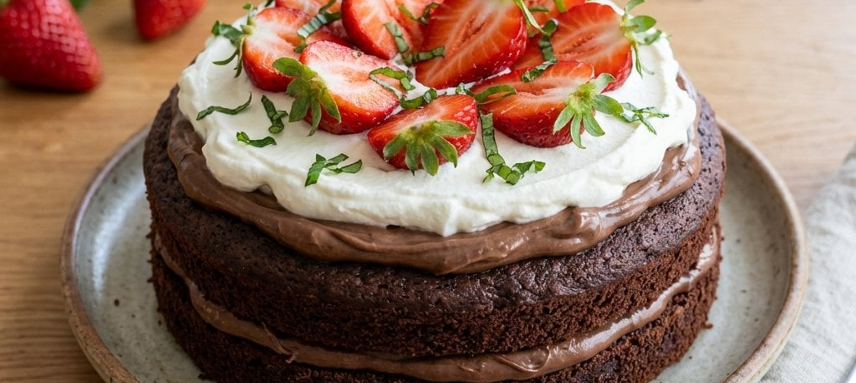 - 8Helyezzük az egyik tortalapot egy tálra, kenjük meg a Nutellás krém felével, majd a tejszínes krém felével. Rakjuk ki a szár nélküli eprekkel, és szórjuk meg az aprított bazsalikommal. Fedjük le a második lappal, és ismételjük meg a rétegezést. A tetejét díszítsük a maradék eperrel és egész bazsalikomlevelekkel.