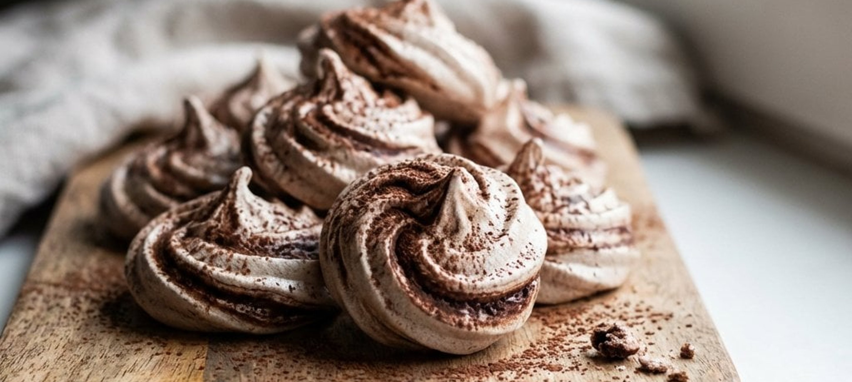 A habcsókok akkor a legszebbek, ha a csokoládét csak lazán csíkozzuk bele a habba, így márványos mintát kapunk.