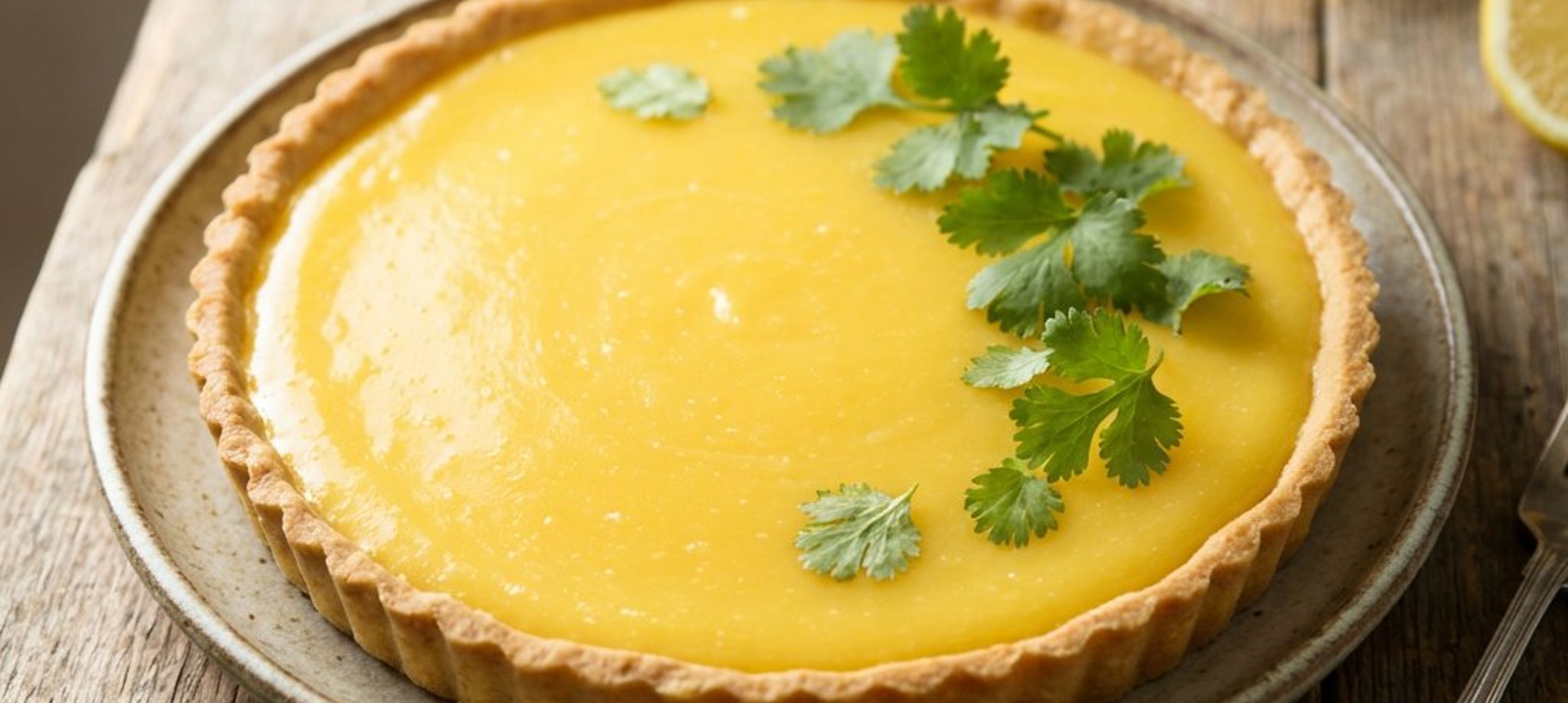 - 2A maradék 200 g vajat habosítsuk fel, majd kanalanként dolgozzuk bele a citromos masszát. Hagyjuk a krémet a hűtőben kb. 1 órát dermedni, majd töltsük meg vele a tésztaalapot. Simítsuk el a tetejét, és díszítsük friss korianderlevelekkel.