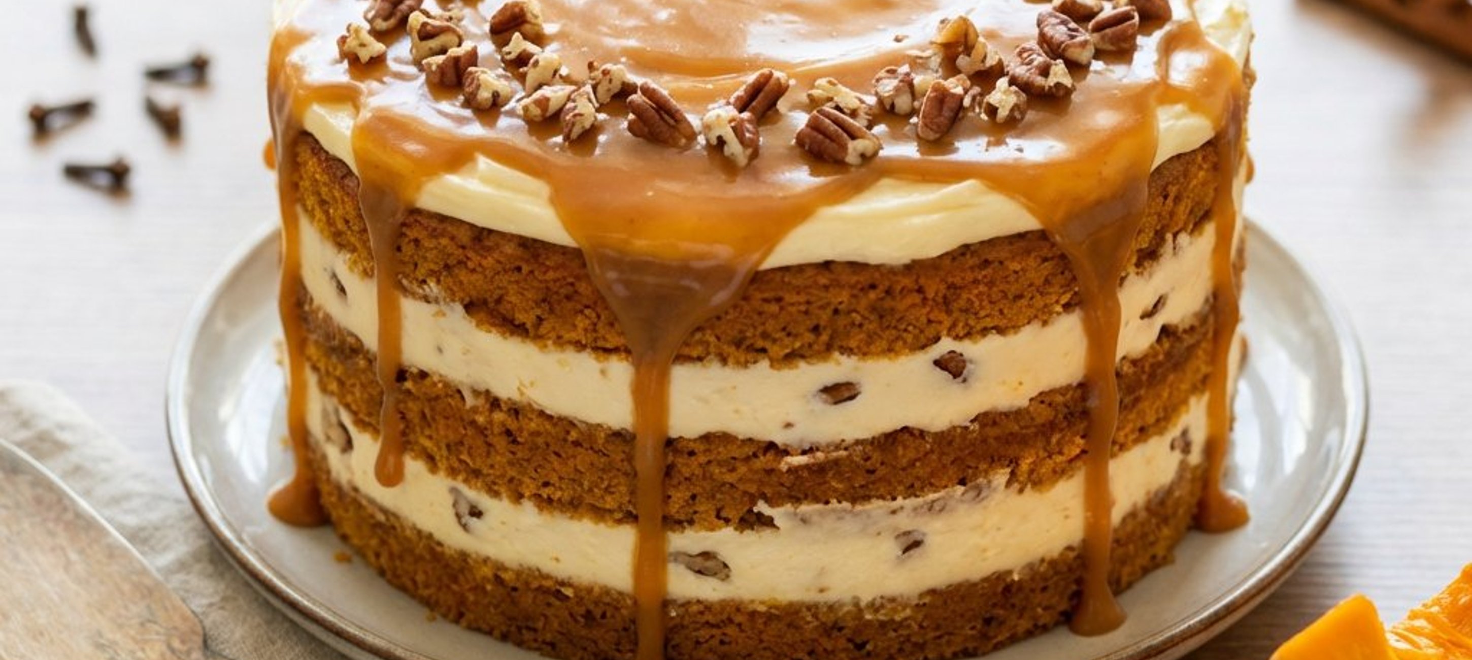 A tortát díszíthetjük extra pekándióval vagy ehető virágokkal is az ünnepibb megjelenésért.