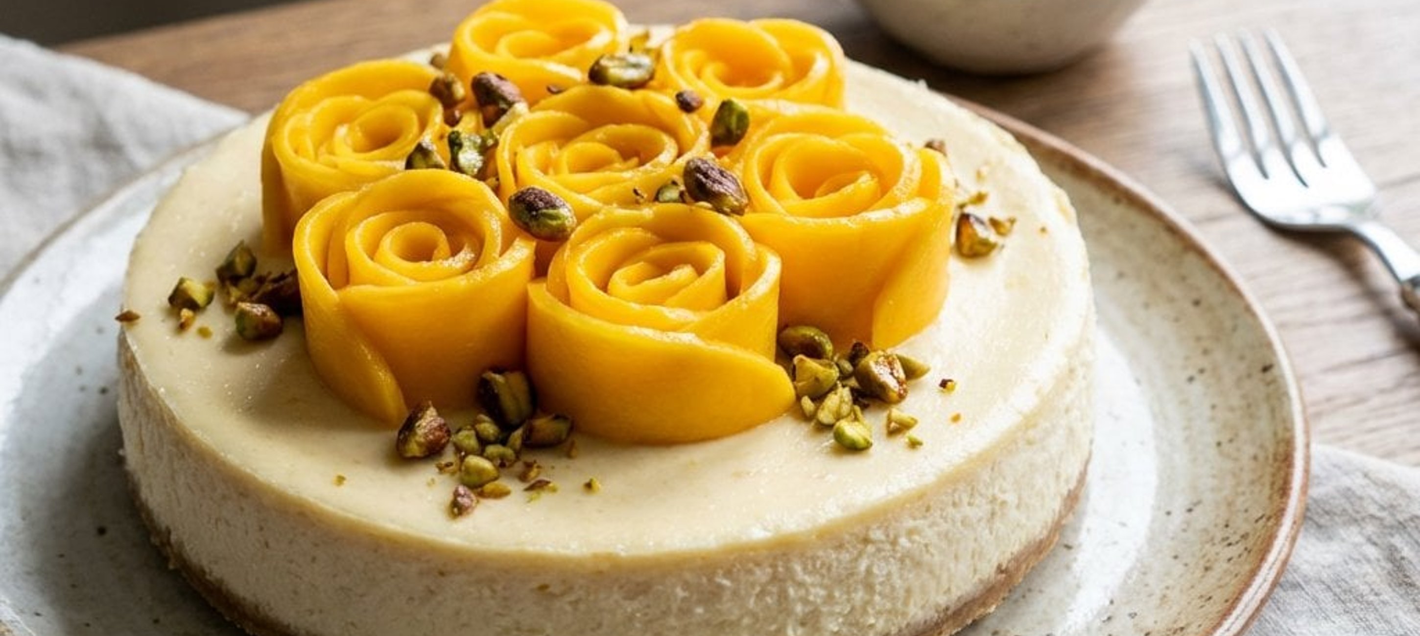 - 2A mangót hámozzuk meg, távolítsuk el a magját, és vágjuk vékony szeletekre (használhatunk burgonyahámozót is). A szeleteket tekerjük fel kis rózsákká, és díszítsük velük a tortát. Végül szórjuk meg az aprított karamellizált pisztáciával.