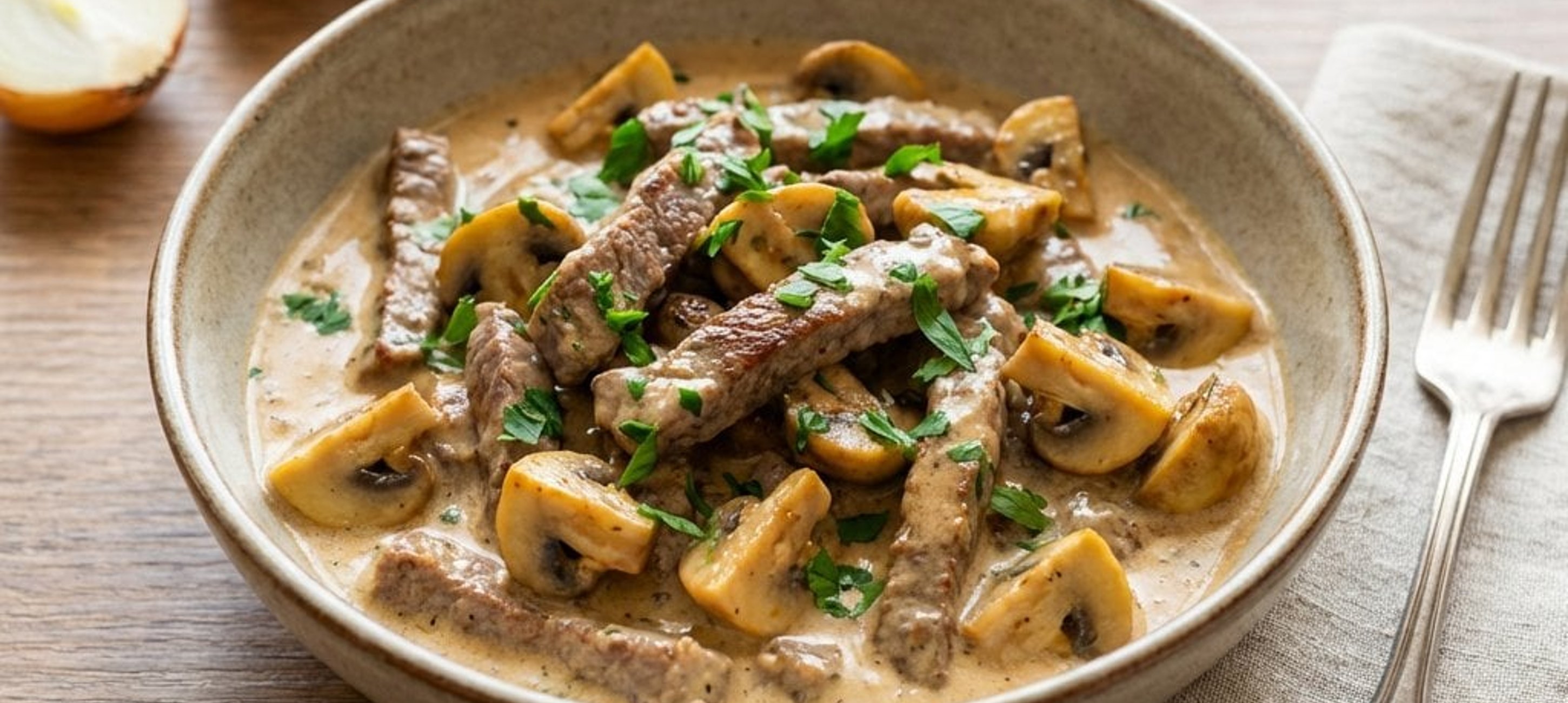 - 3Tegye a húst a félretett gombához és hagymához. A serpenyőbe öntsön 100 ml vizet (vagy alaplevet), és forralja fel, hogy feloldódjanak a pörzsanyagok. Keverje bele a tejfölt, és zárja el a lángot. Amint a tejföl átmelegedett, tegye vissza a húst és a gombás hagymát a serpenyőbe, keverje össze, fedje le, és hagyja állni 5 percig (már ne főzze tovább). Tálalja rizzsel vagy tésztával, friss petrezselyemmel megszórva.