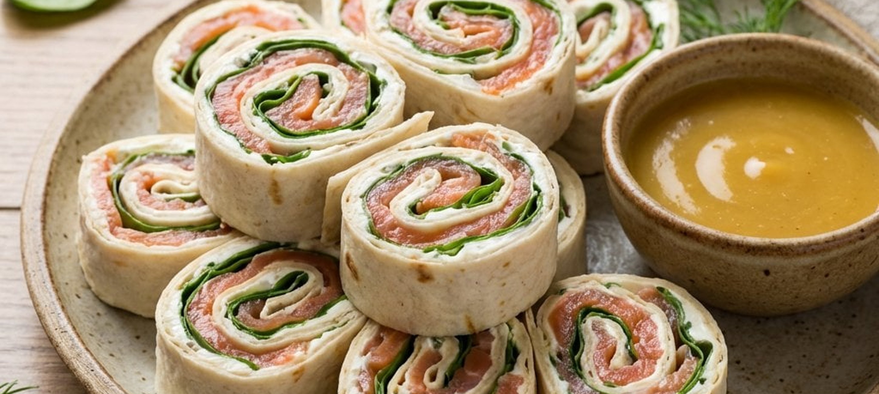 - 1Terítsük ki a lavash kenyeret vagy a tortillalapokat egy tiszta munkafelületre. Mindegyik lapot kenjük meg egyenletesen a krémsajttal, majd oszlassunk el rajtuk egy vékony réteg mézes mustárt.